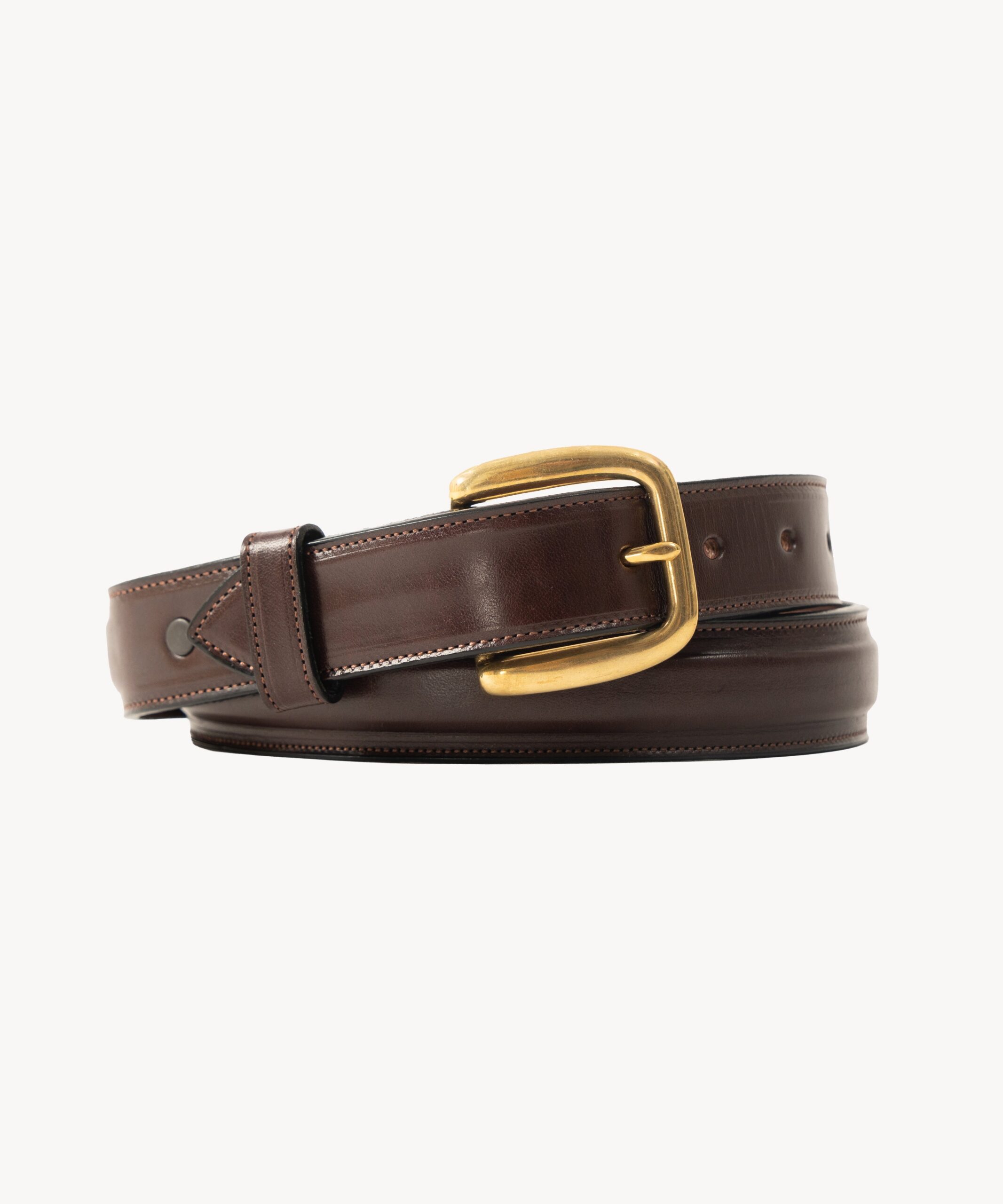 The belt is manufactured for BRUT by Tory Leather, an American company based in Curwensville, PA. Each belt is made from English bridle leather sourced from Wickett & Craig, awarded the 2015 Tannery of the Year.