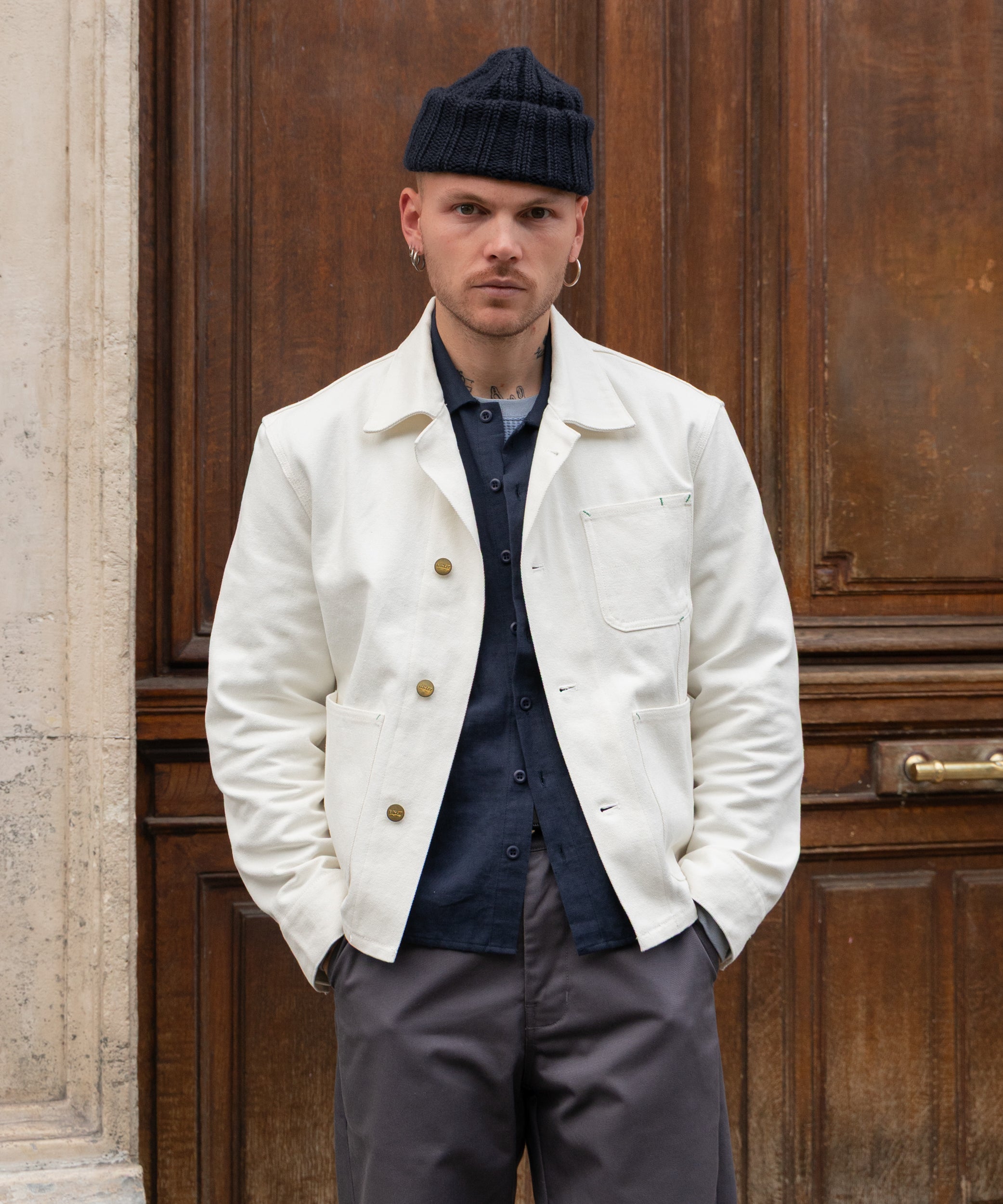 The TOOL JACKET is a modern reinterpretation of the 1950s work jacket, it is made out of an heavy cotton canvas, quality hardware and triple-stitch construction in order to endure time. It features the iconic hammer pocket as a nod to vintage carpenters and double knee pants.