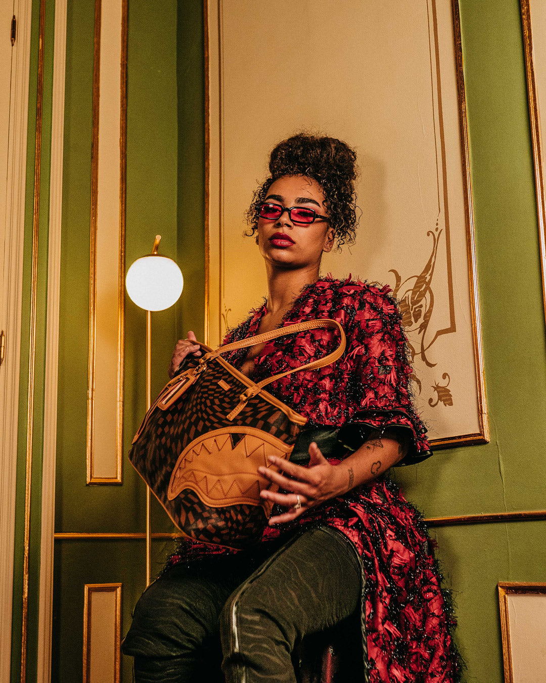 Dimensions: 19″ x 6.5″ x 11.5″ • Top zipper opening • Top double handle • Sprayground keychain • Gold zippers with metal hardware