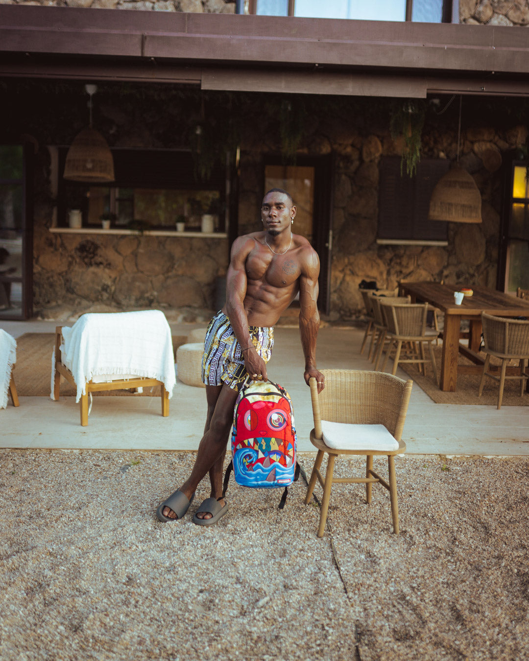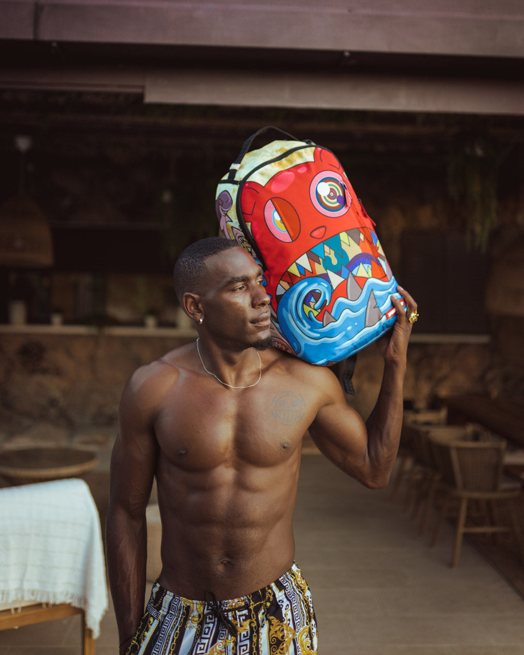 Dimensions: 18″ x 6″ x 11.5″ • Front zipper pocket • Side pockets • Zippered Stash pocket • Separate velour sunglass compartment • Ergonomic mesh back padding • Adjustable Straps for custom sizing • Gold zippers with metal hardware • Metal « Sprayground Authentic » badge • Slide through back sleeve connects to carry-on luggage to free your hands