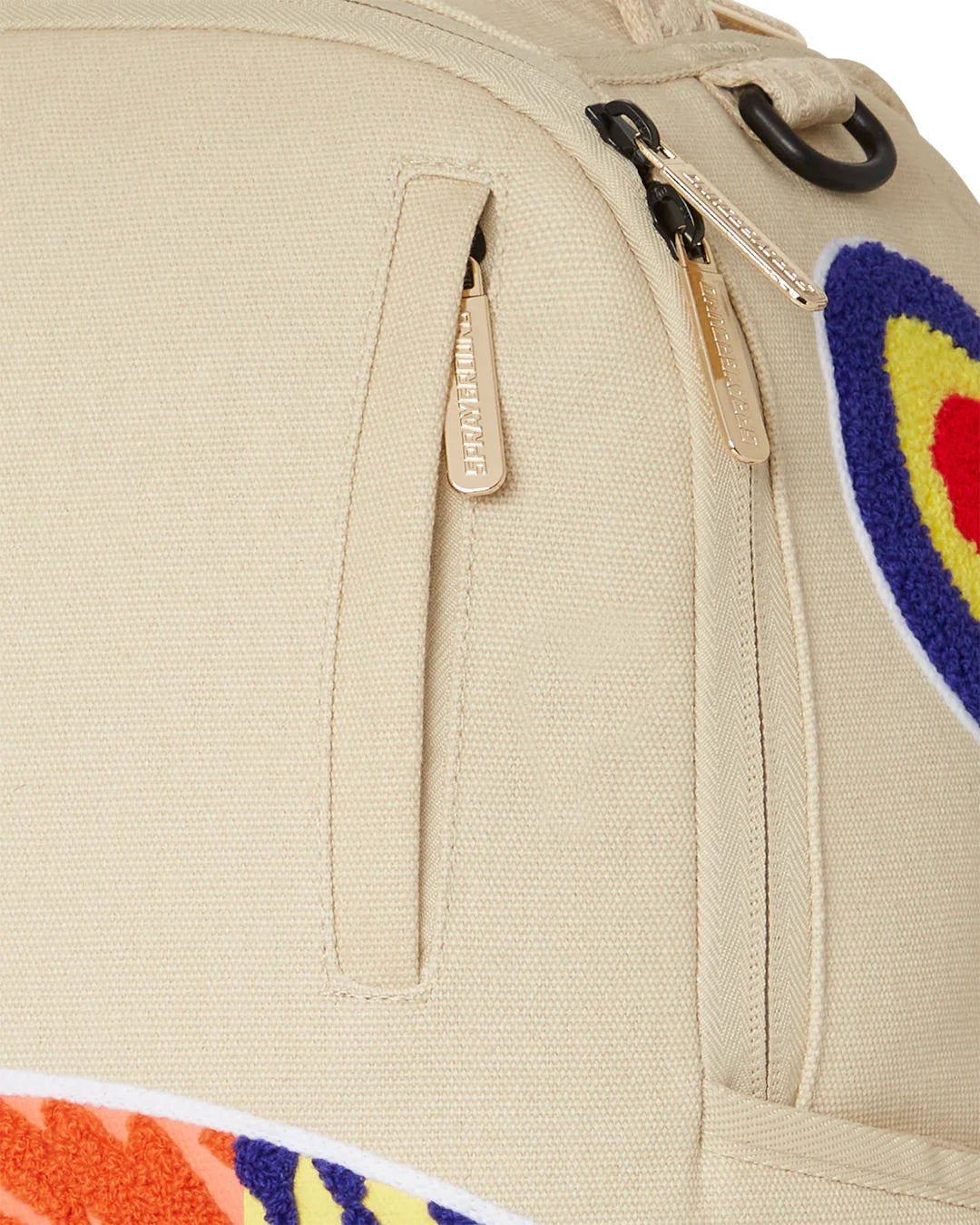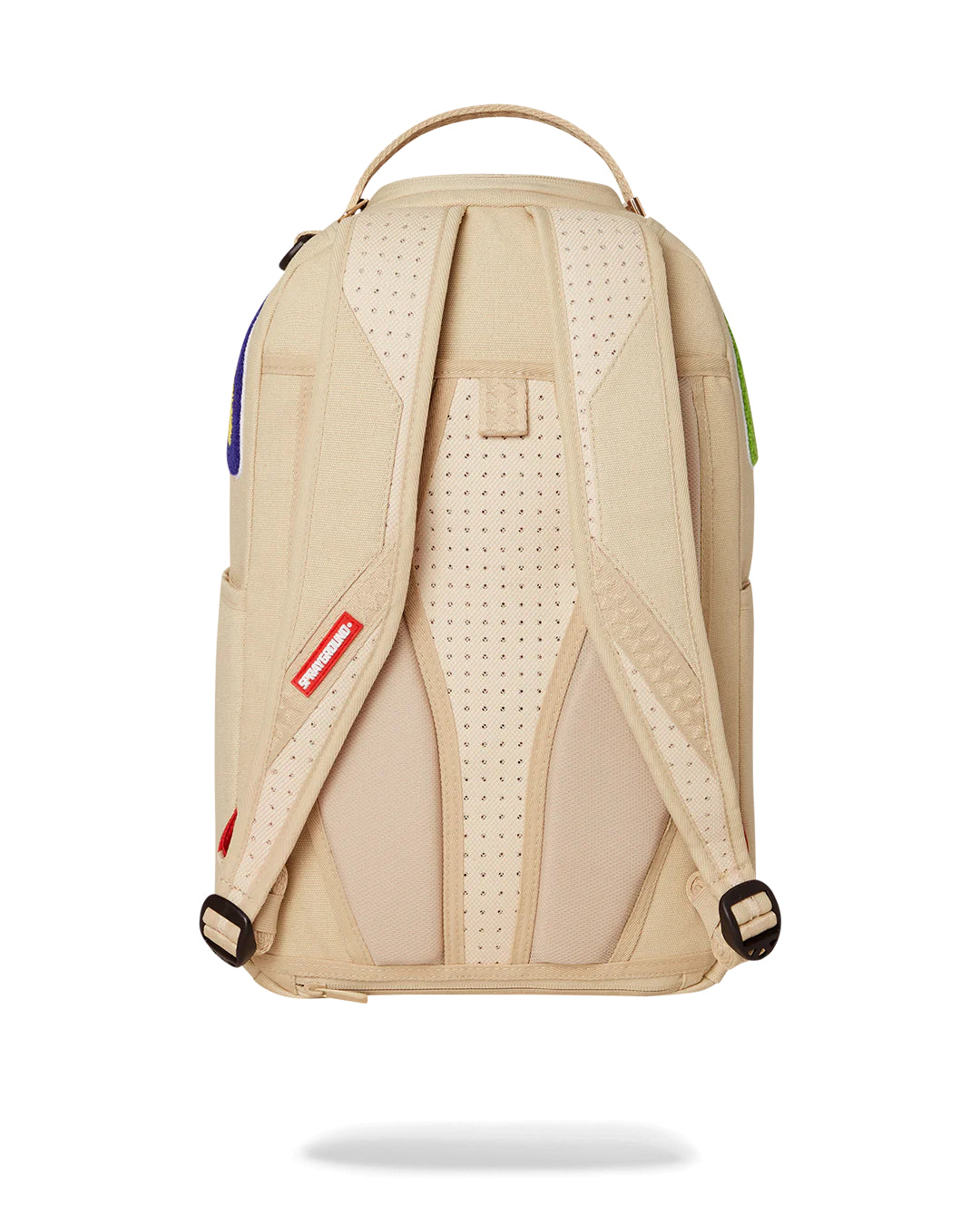 Dimensions: 18″ x 6″ x 11.5″ • Front zipper pocket • Side pockets • Zippered Stash pocket • Separate velour sunglass compartment • Ergonomic mesh back padding • Adjustable Straps for custom sizing • Gold zippers with metal hardware • Metal « Sprayground Authentic » badge • Slide through back sleeve connects to carry-on luggage to free your hands