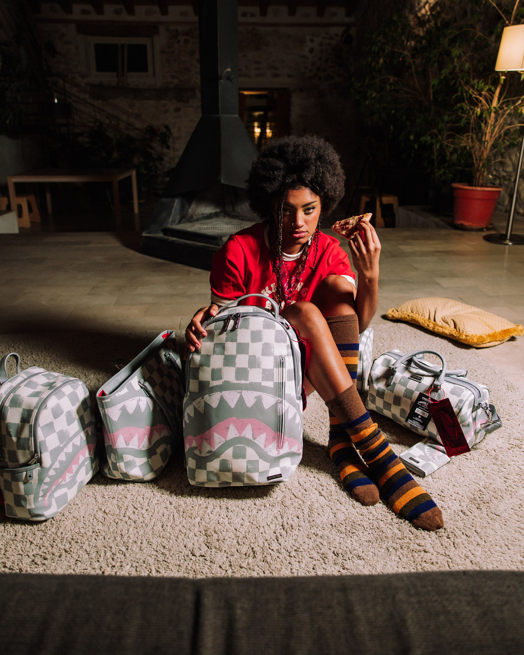Dimensions: 25.40 cm x 12.70 cm x 29.21 cm • Two large main zippered compartments • Side pockets • Zippered stash pocket • Adjustable straps for custom sizing • Gold zippers with metal hardware