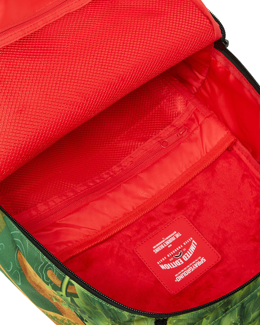 Dimensions: 18″ x 6″ x 11.5″ • Front zipper pocket • Side pockets • Zippered Stash pocket • Separate velour sunglass compartment • Ergonomic mesh back padding • Adjustable Straps for custom sizing • Gold zippers with metal hardware • Metal « Sprayground Authentic » badge • Slide through back sleeve connects to carry-on luggage to free your hands