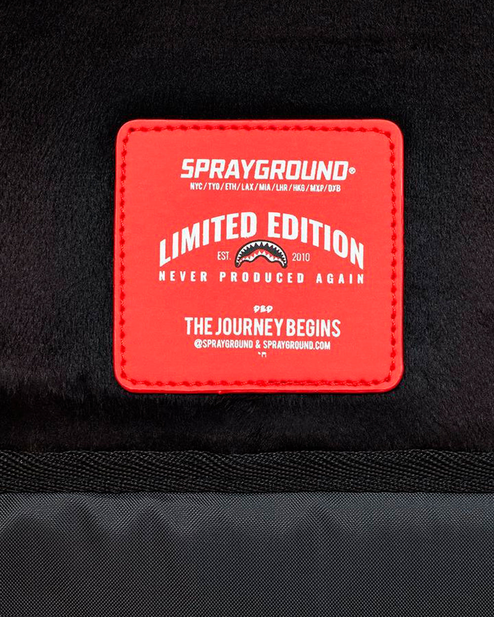 Dimensions: 18″ x 6″ x 11.5″ • Front zipper pocket • Side pockets • Zippered Stash pocket • Ergonomic mesh back padding • Adjustable Straps for custom sizing • Nylon Zippers with Metal Hardware • Metal « Sprayground Authentic » badge • Slide through back sleeve connects to Carry on luggage to free your hands