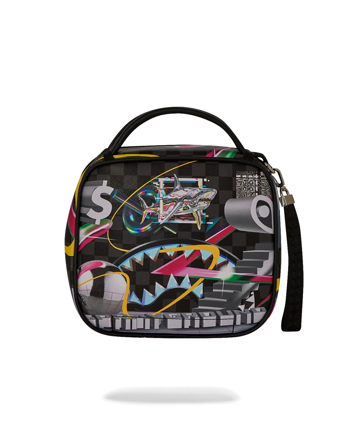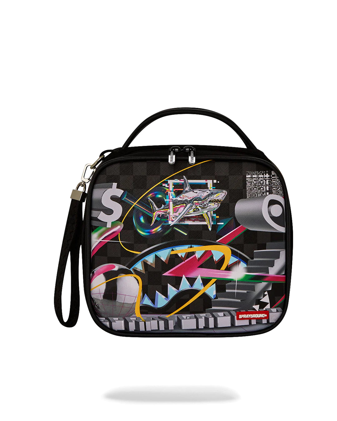 Dimensions: 8.5″ x 3″ x 8.5″ • Double zipper opening • Top handle • Removable side handle • Red zippers with metal hardware • Zippered stash pocket