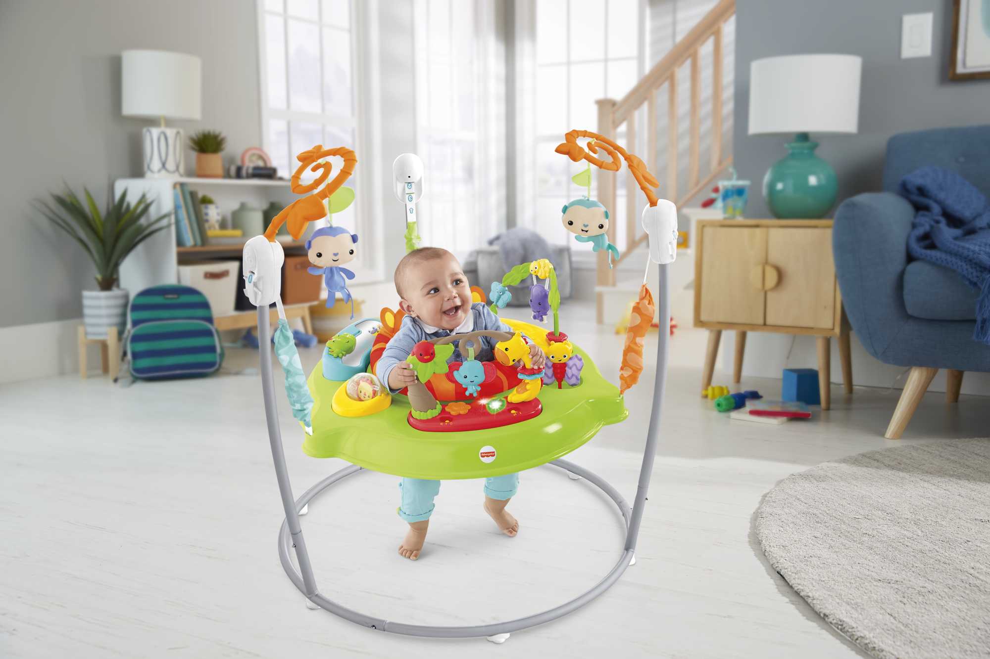 Avec ce centre d’activités Jumperoo Jungle Sons et Lumières de Fisher-Price, bébé apprend à sauter et à se mouvoir en compagnie de ses amis animaux. Ce trotteur sauteur émet de la musique, des lumières et des sons entraînants encourageant bébé à bouger et à sauter pour développer ses capacités motrices et sensorielles. Le harnais tourne à 360 degrés pour que bébé puisse interagir avec les jouets, les activités et les animaux disposés tout autour de la table d’activités. Ce youpala évolutif comprend des éléments qui tournent et qui cliquettent, une arche de jeux, un miroir, des peluches à attraper et bien plus encore. Chez Fisher-Price, nous nous adaptons aux besoins des tout-petits et aux préoccupations de leurs parents. Le siège possède donc trois réglages en hauteur, permettant à bébé de continuer à explorer le monde à mesure qu’il grandit. Dotée d’une structure solide en acier et d’un coussin lavable en machine, la balancelle tient debout seule sans risque d’accrochage, se range et se transporte facilement. Cet article ne doit être utilisé que pour un enfant qui est capable de tenir sa tête droite sans aide et qui ne peut pas en sortir tout seul. Idéal pour un bébé de 9 mois et plus.