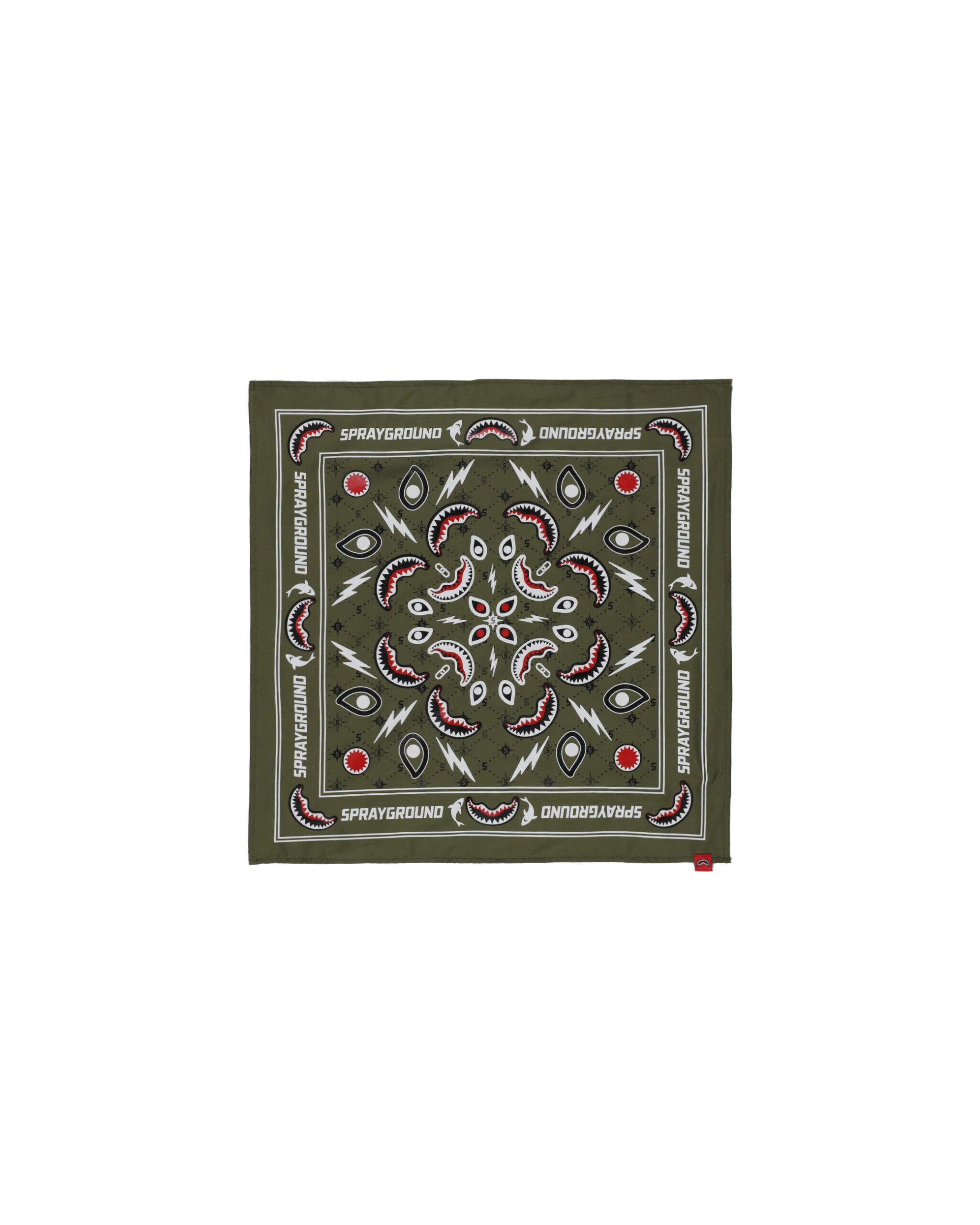 Military green bandana in 100% Organic Cotton poplin silkscreen printed.