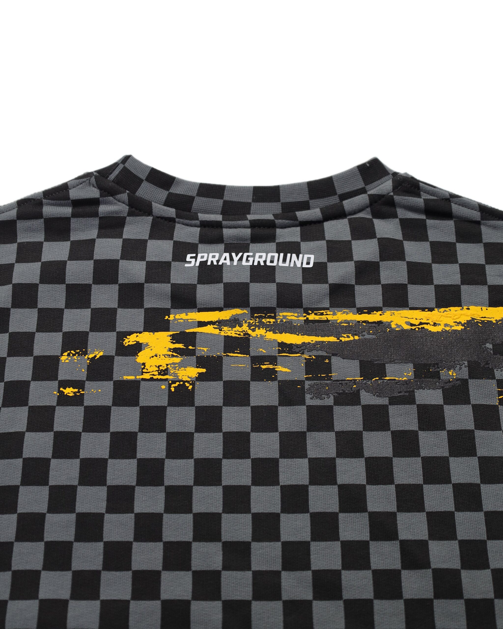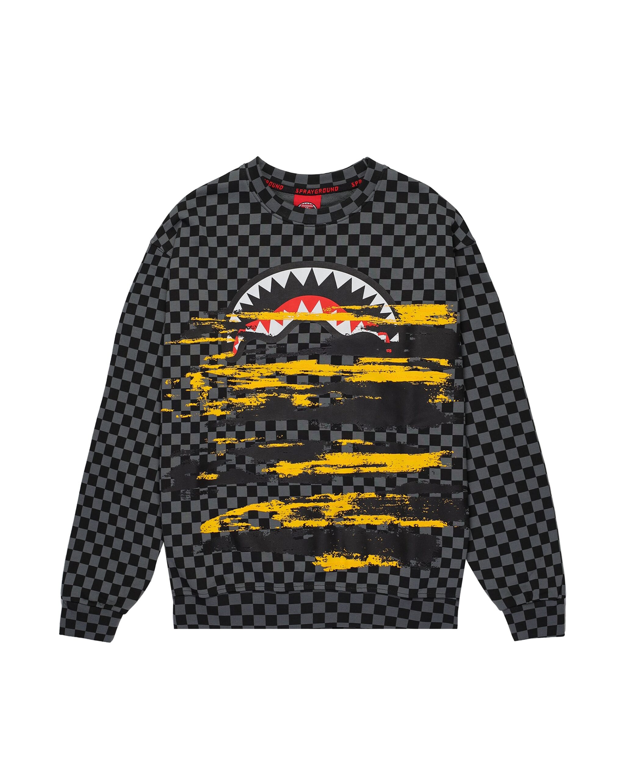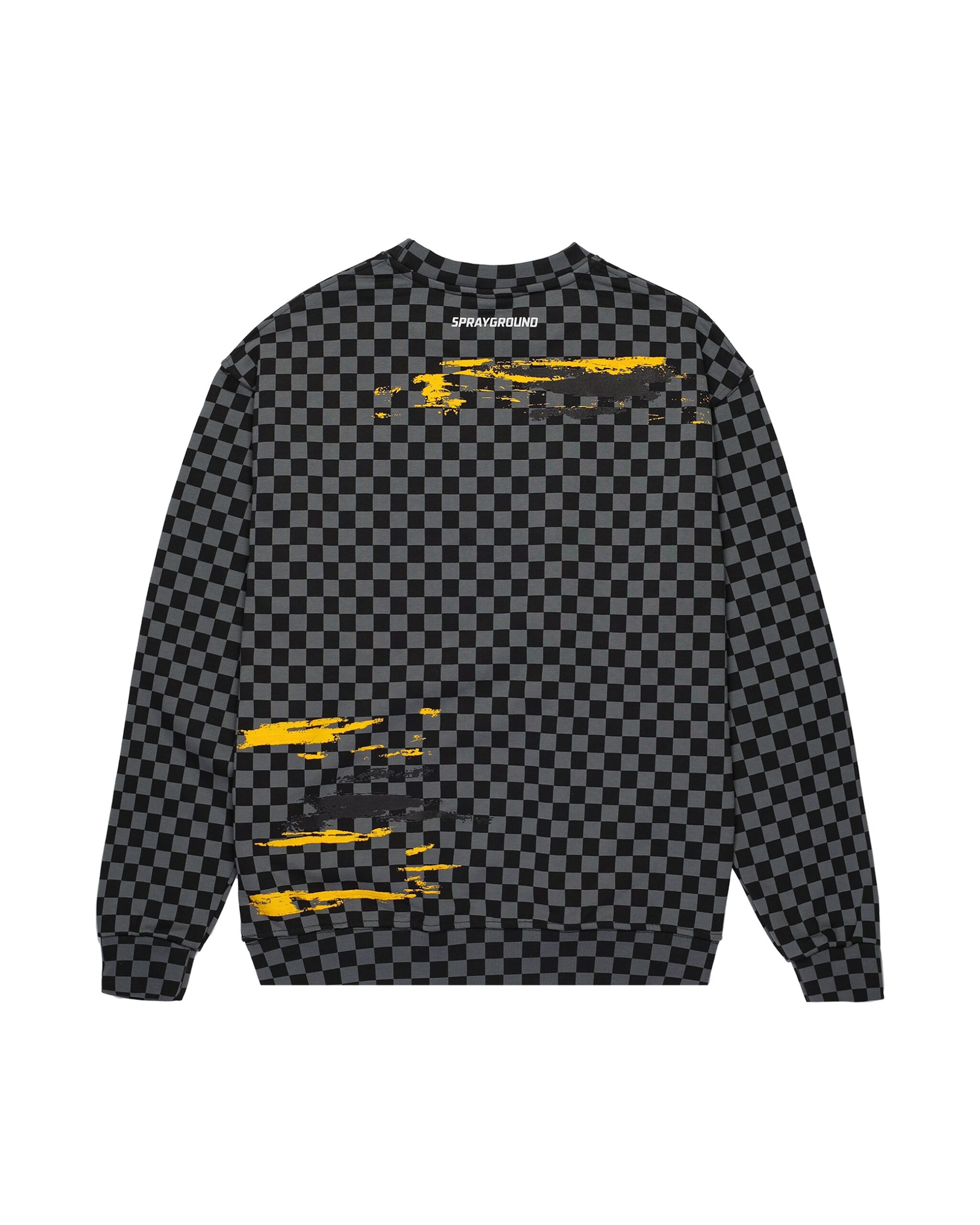 Ungauzed 100% Cotton 330gsm crewneck sweatshirt with all over checkered pattern.