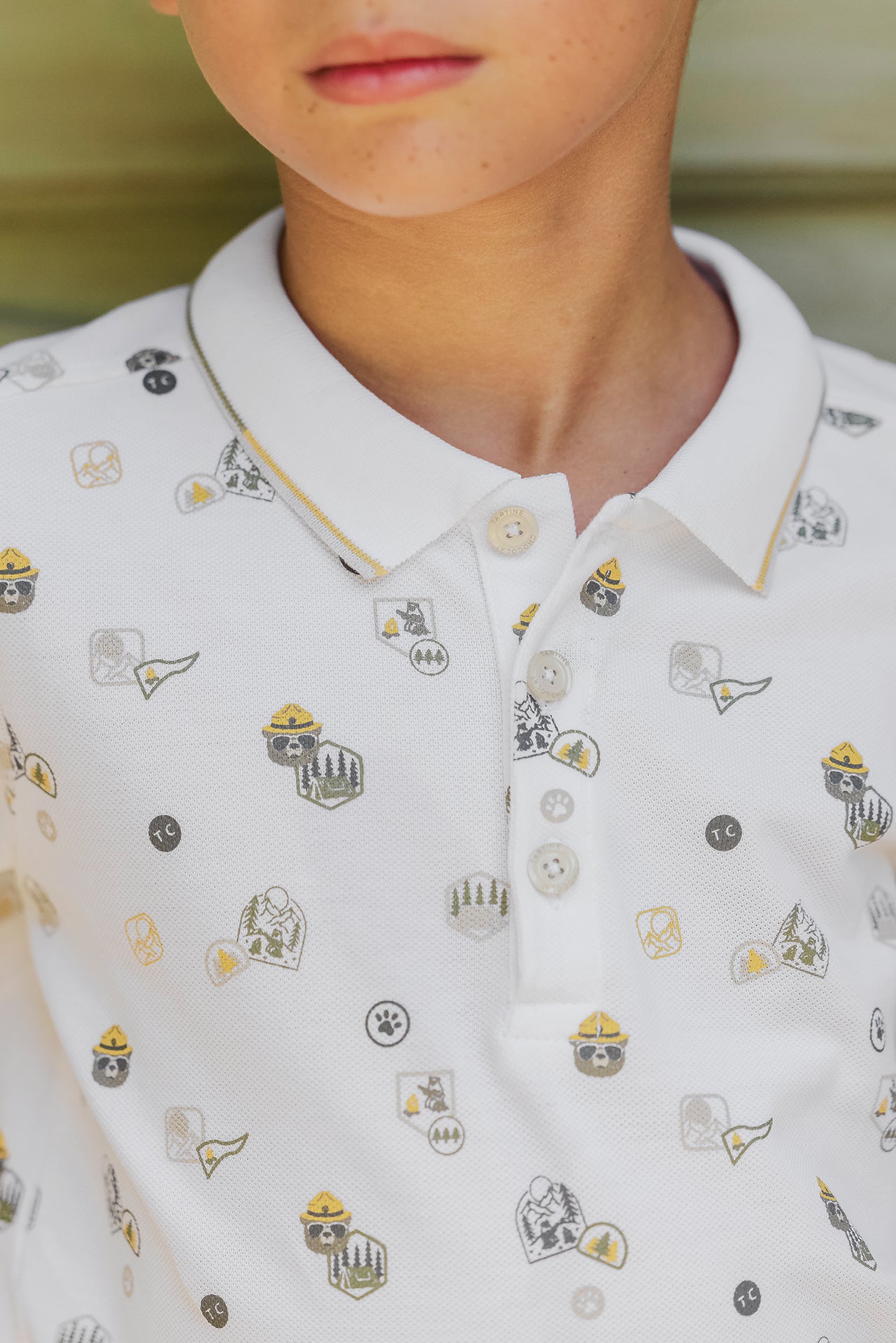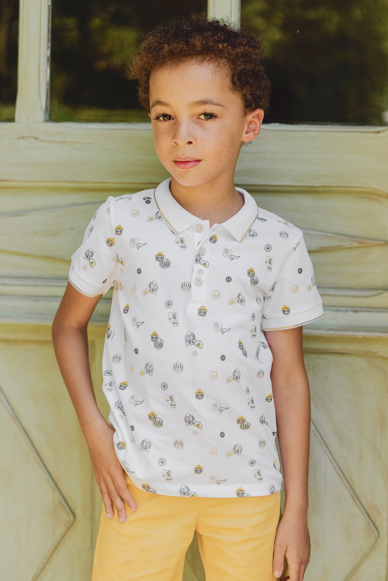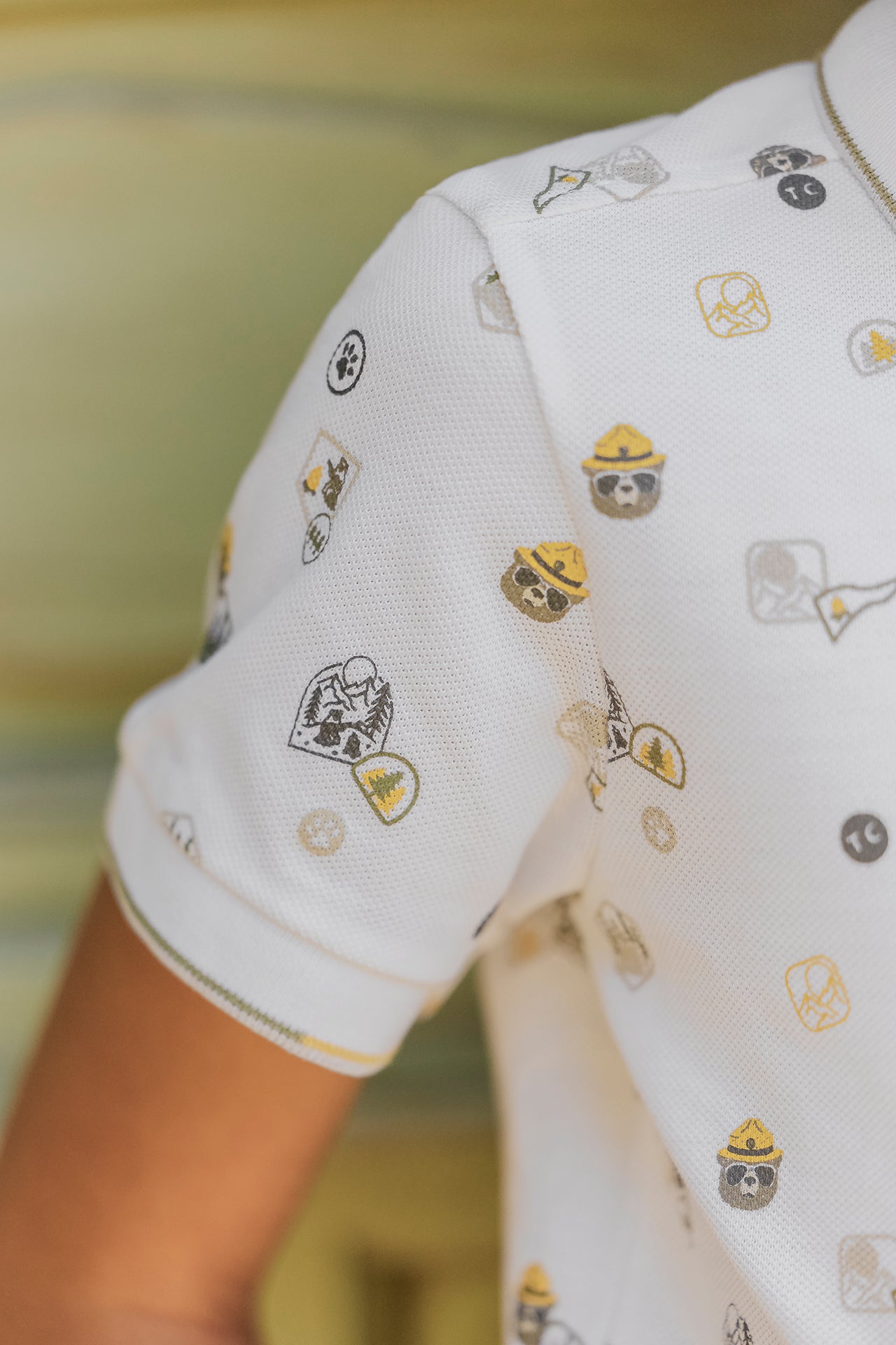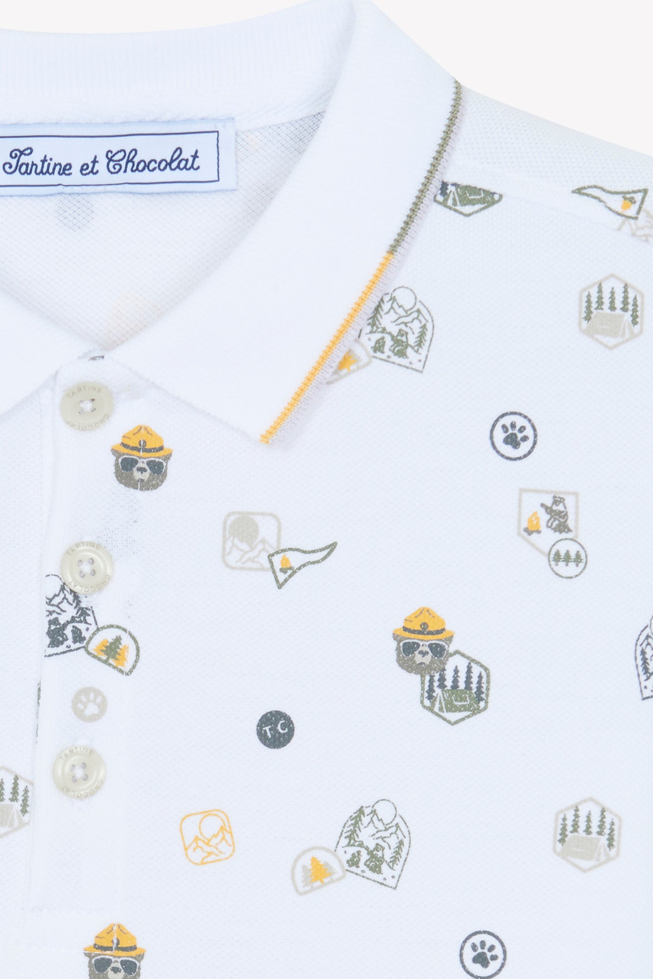 Ce polo blanc, paré d’illustrations explorateur sur toute sa surface, invite les grands aventuriers à découvrir le monde avec style. Confectionné avec soin en Europe, il est rehaussé d’un liseré subtil sur le col et les manches, apportant une touche élégante et soignée. Parfait pour une allure chic et décontractée. CA11023-57
