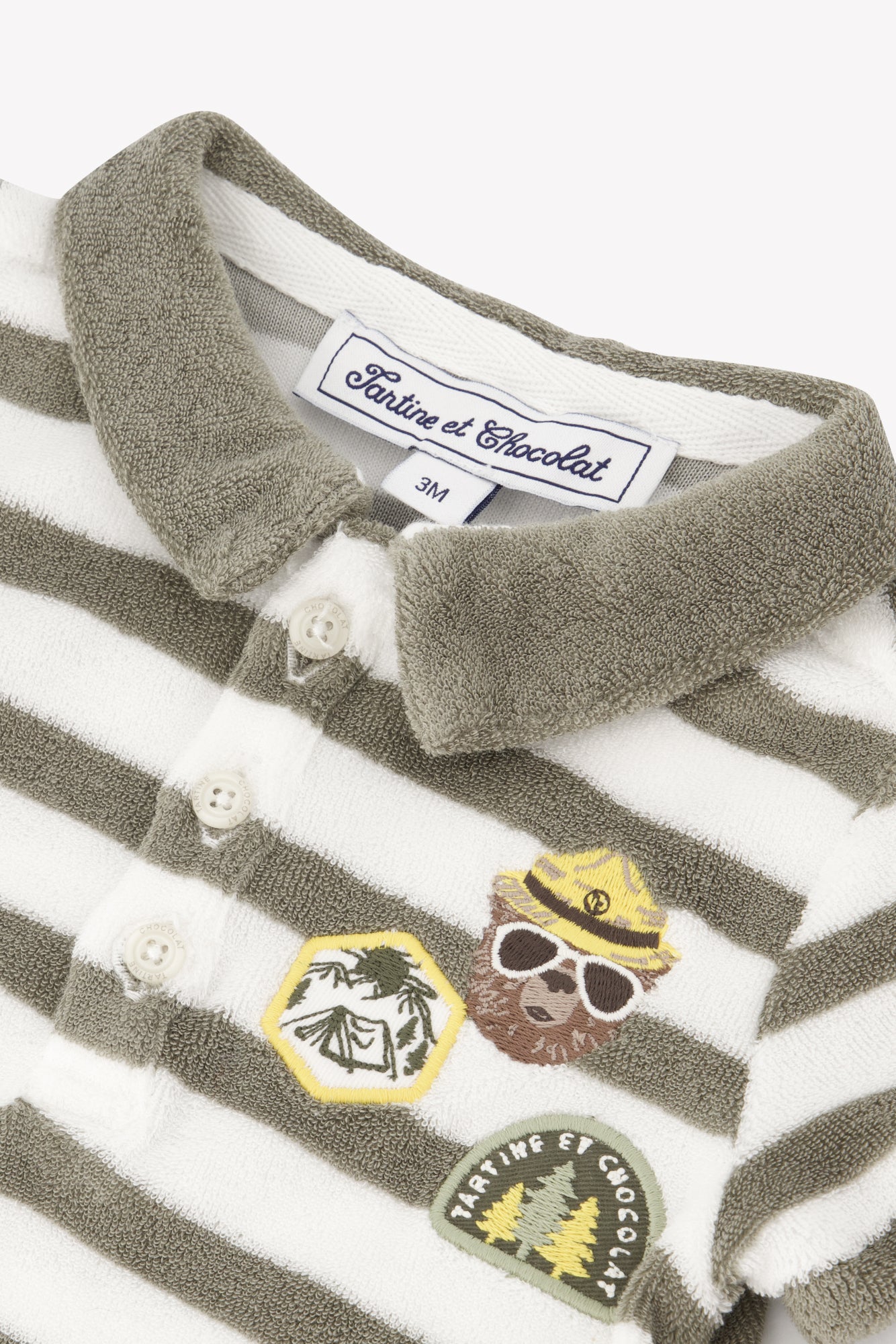 Ce polo rayé kaki en maille éponge douce se distingue par ses écussons explorateur signés TC, apportant une touche d’aventure élégante. Confectionné avec soin en Europe, il allie confort et style pour des journées estivales remplies de découvertes. Pour un ensemble harmonieux et plein de style, il se complète parfaitement avec le short assorti de la même collection. CA11111-57
