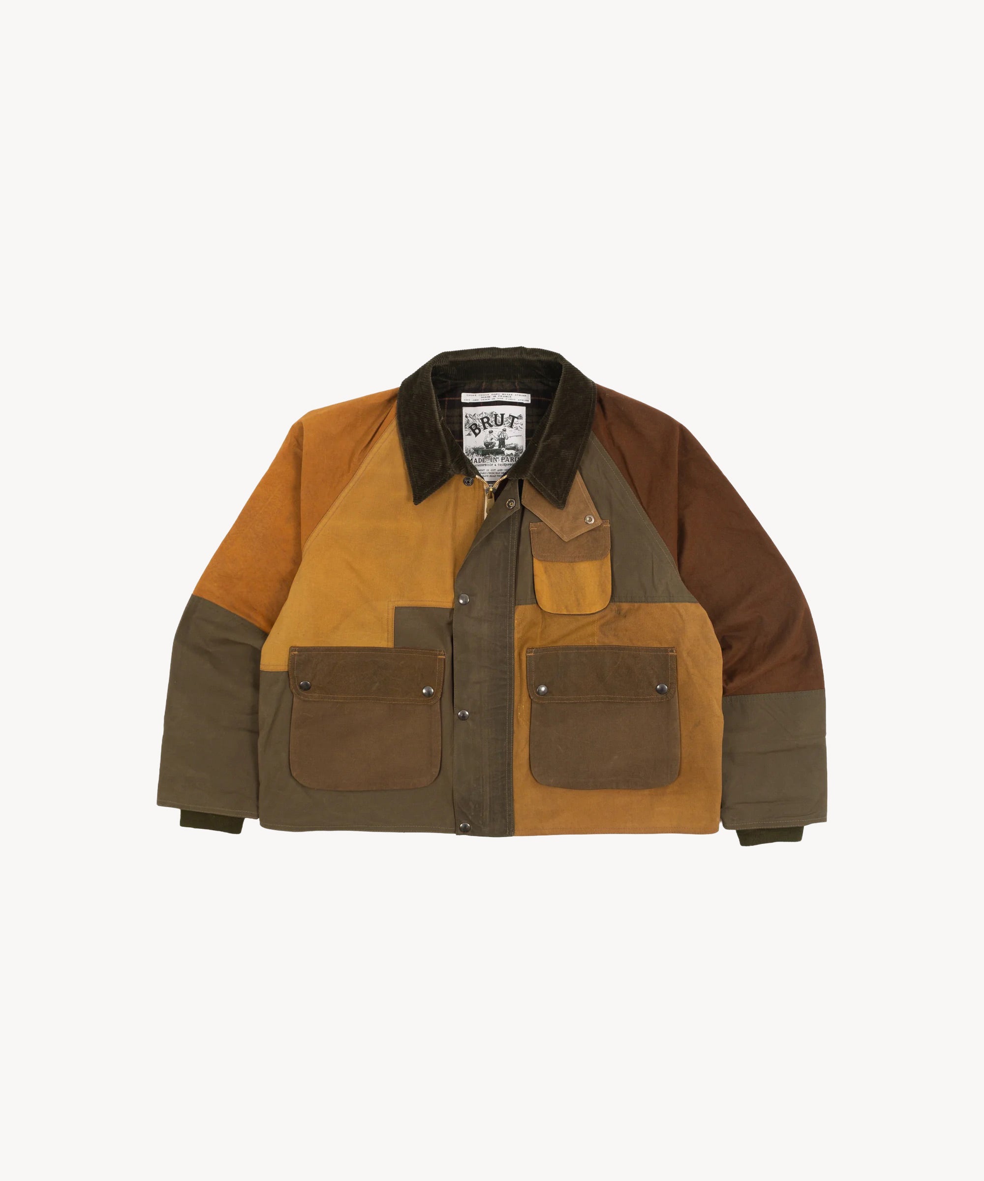 The REWORK® BARBOUR V5 is crafted from curated vintage Barbour and British Millerain dry waxed fabric in a patchwork style. Each jacket is one of a kind, made from vintage materials and quality hardware. To honor this legacy, all of our REWORK® BARBOUR V5 jackets are cut and sewn with vintage equipment in our atelier in Paris.