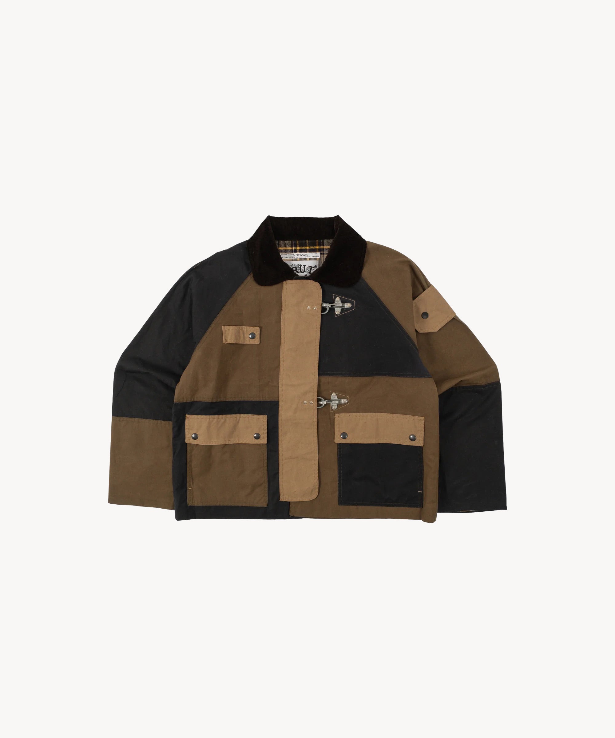 The REWORK® WAX HOOK JACKET is crafted from old stock British Millerain dry waxed fabric in a patchwork style. Each jacket is one of a kind, made from vintage materials and quality hardware. To honor this legacy, all of our REWORK® WAX HOOK JACKETS are cut and sewn with vintage equipment in our atelier in Paris.