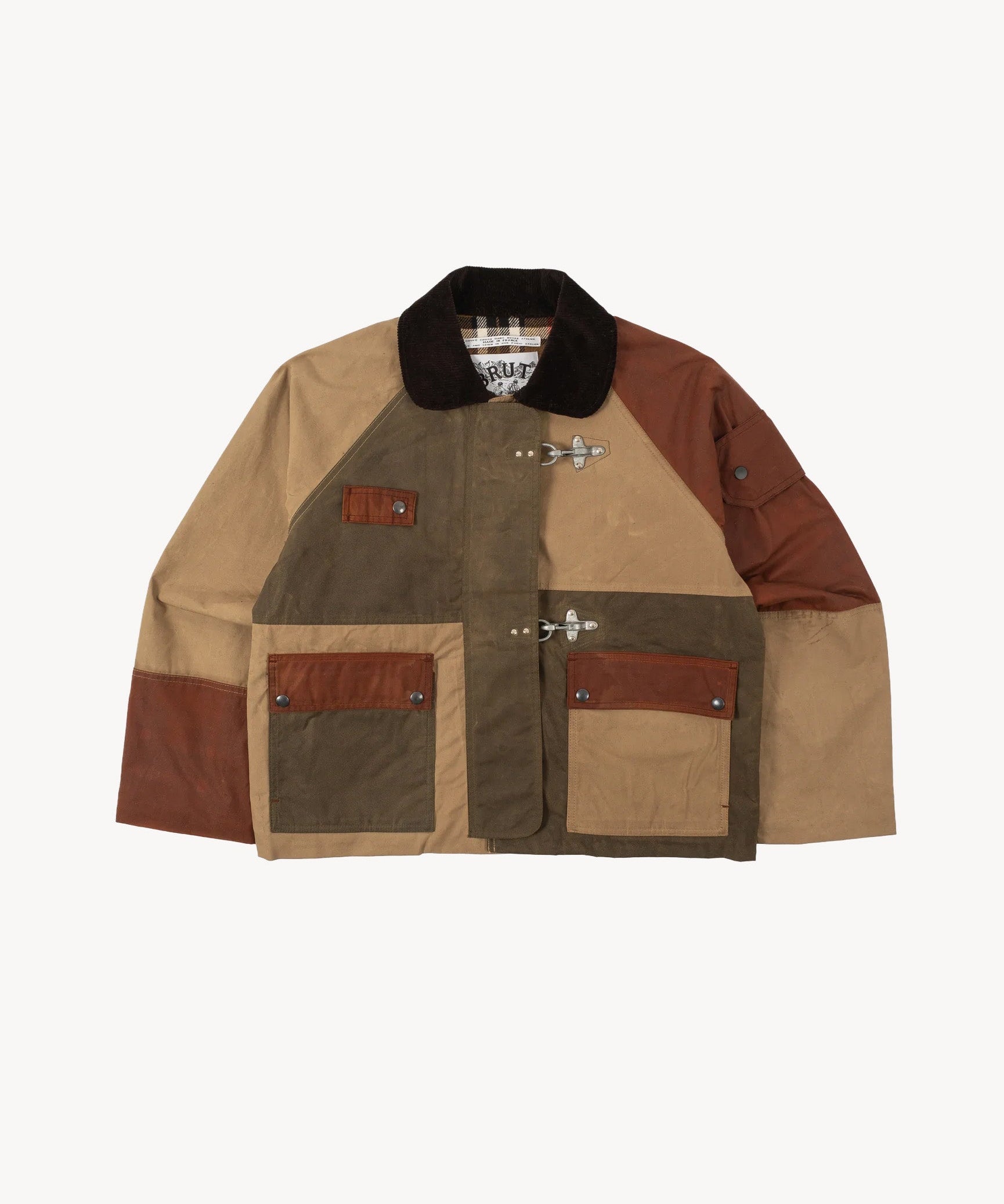 The REWORK® WAX HOOK JACKET is crafted from old stock British Millerain dry waxed fabric in a patchwork style. Each jacket is one of a kind, made from vintage materials and quality hardware. To honor this legacy, all of our REWORK® WAX HOOK JACKETS are cut and sewn with vintage equipment in our atelier in Paris.