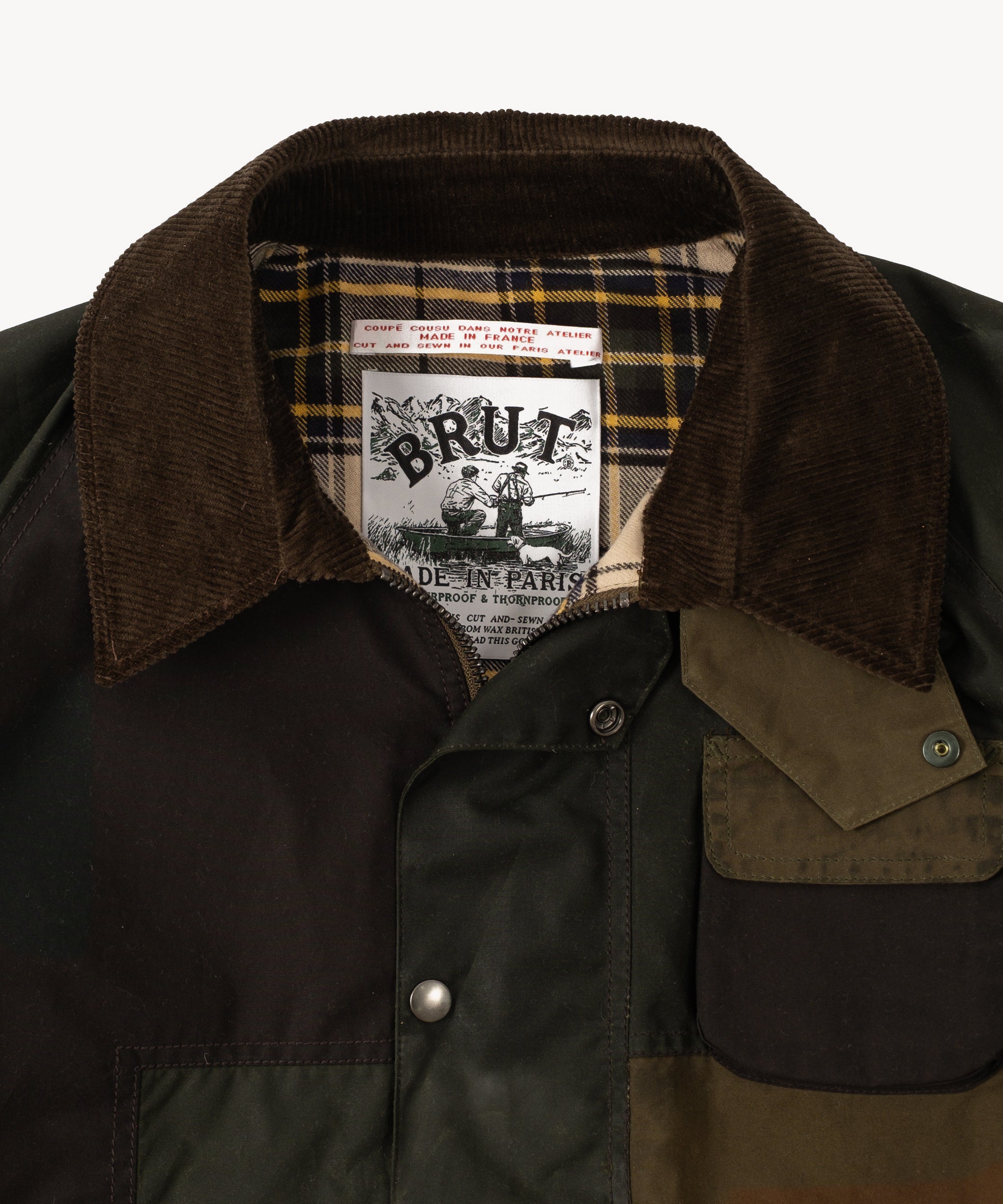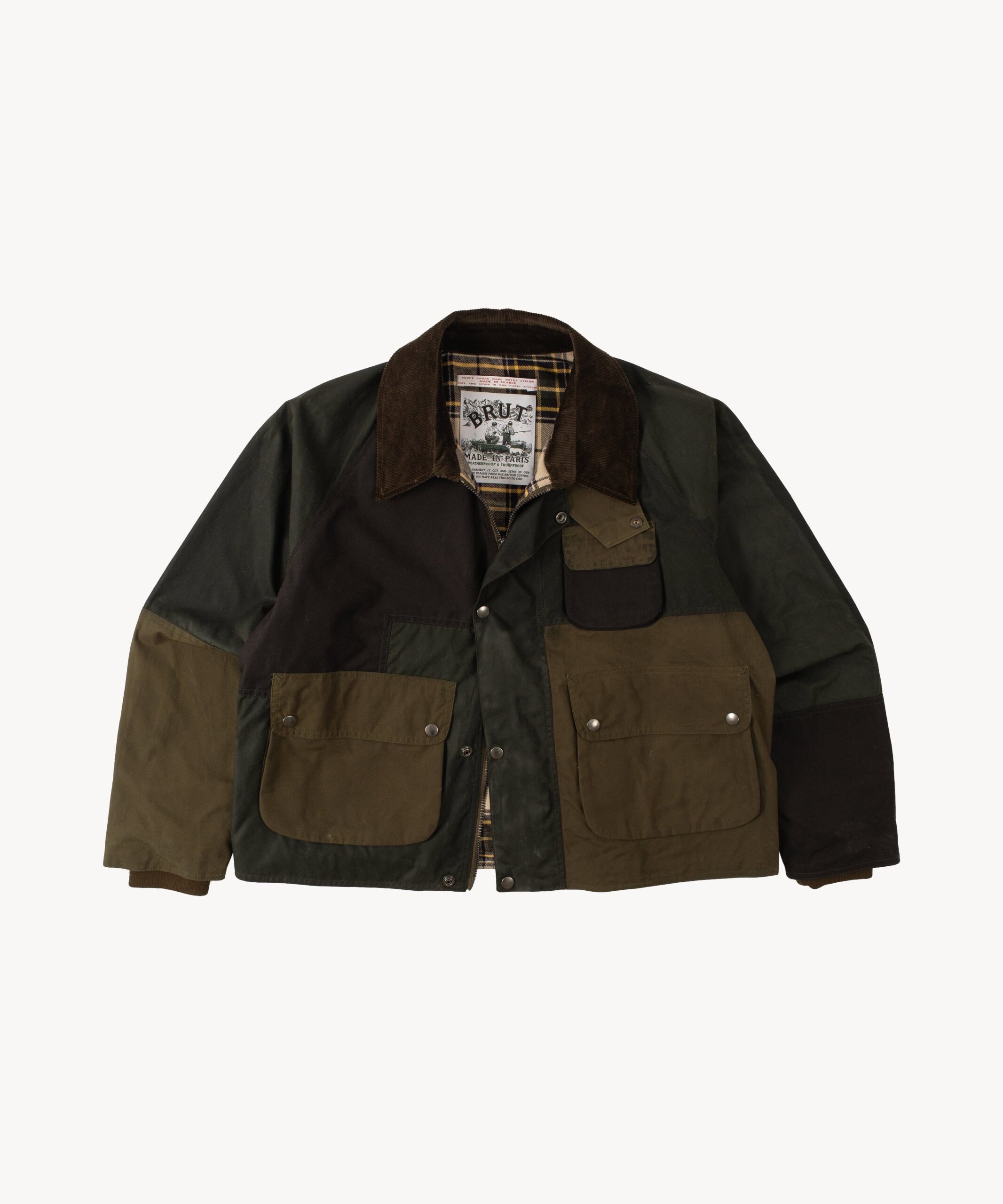 The REWORK® WAX JACKET – V5 is crafted from old stock British Millerain dry waxed fabric in a patchwork style.