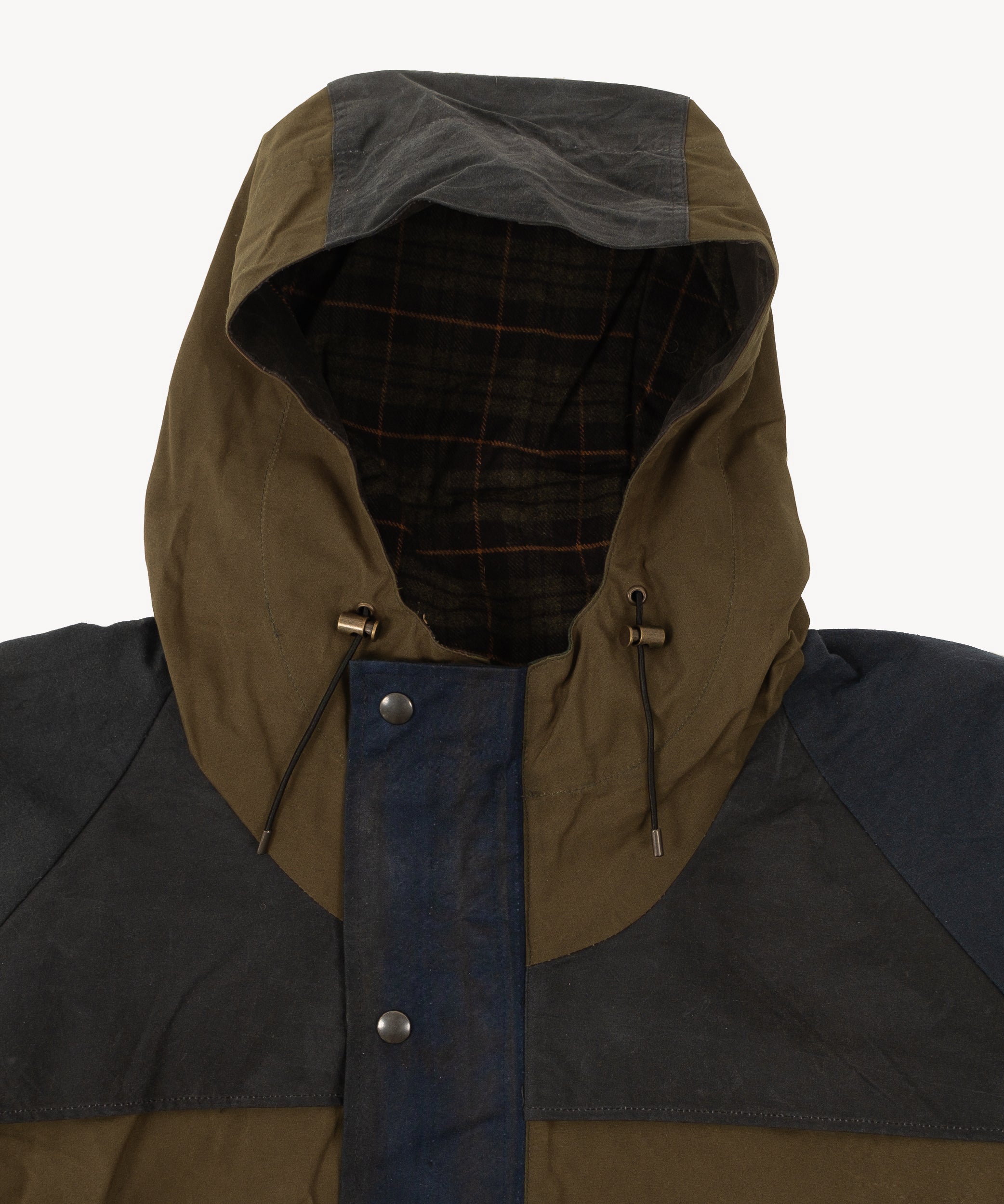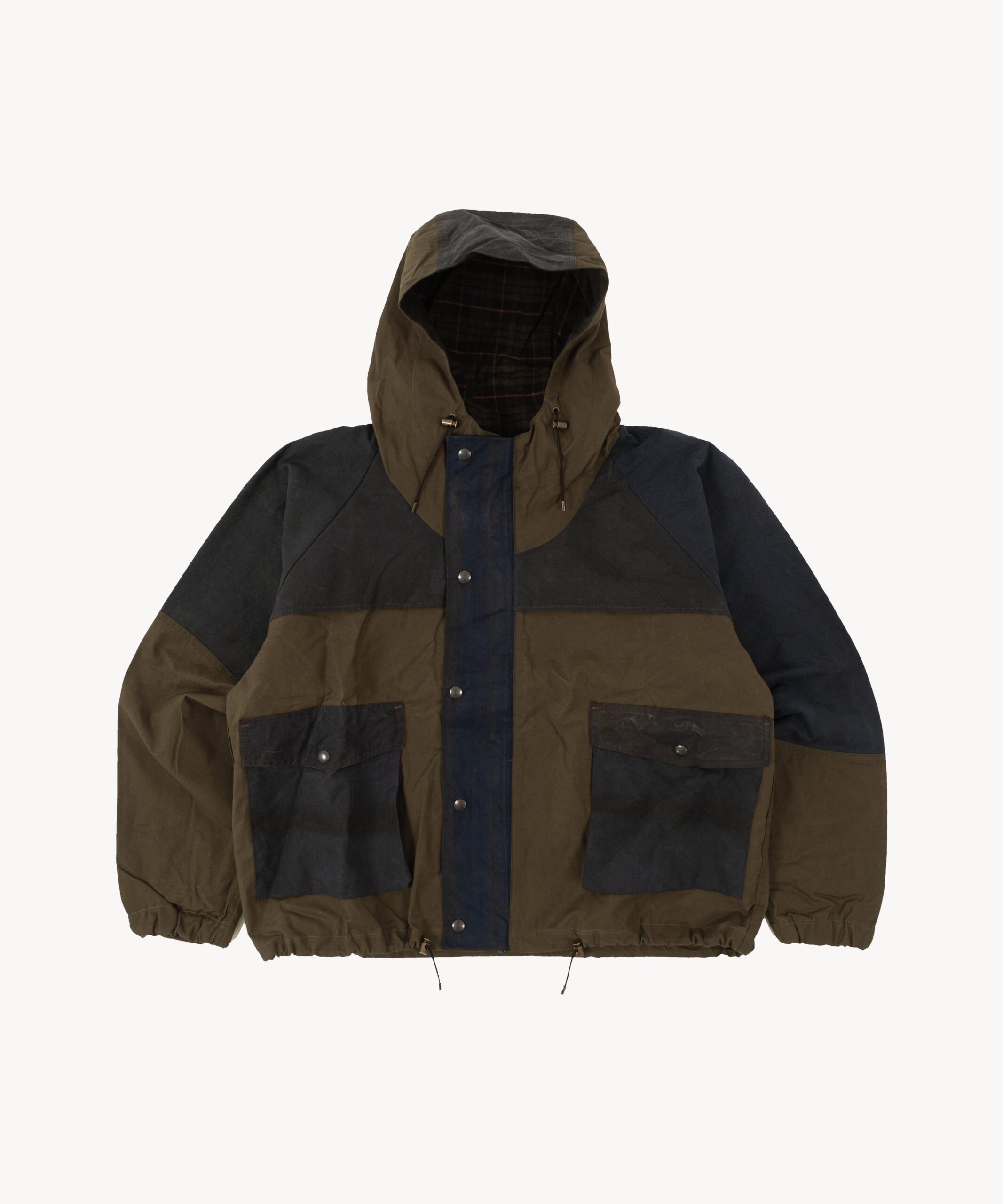 The REWORK® WAX RAIN CROPPED JACKET is crafted from old stock British Millerain dry waxed fabric and curated vintage Barbour in a patchwork style. Each jacket is one of a kind, made from vintage materials and quality hardware. To honor this legacy, all of our REWORK® WAX RAIN CROPPED JACKET are cut and sewn with vintage equipment in our atelier in Paris.