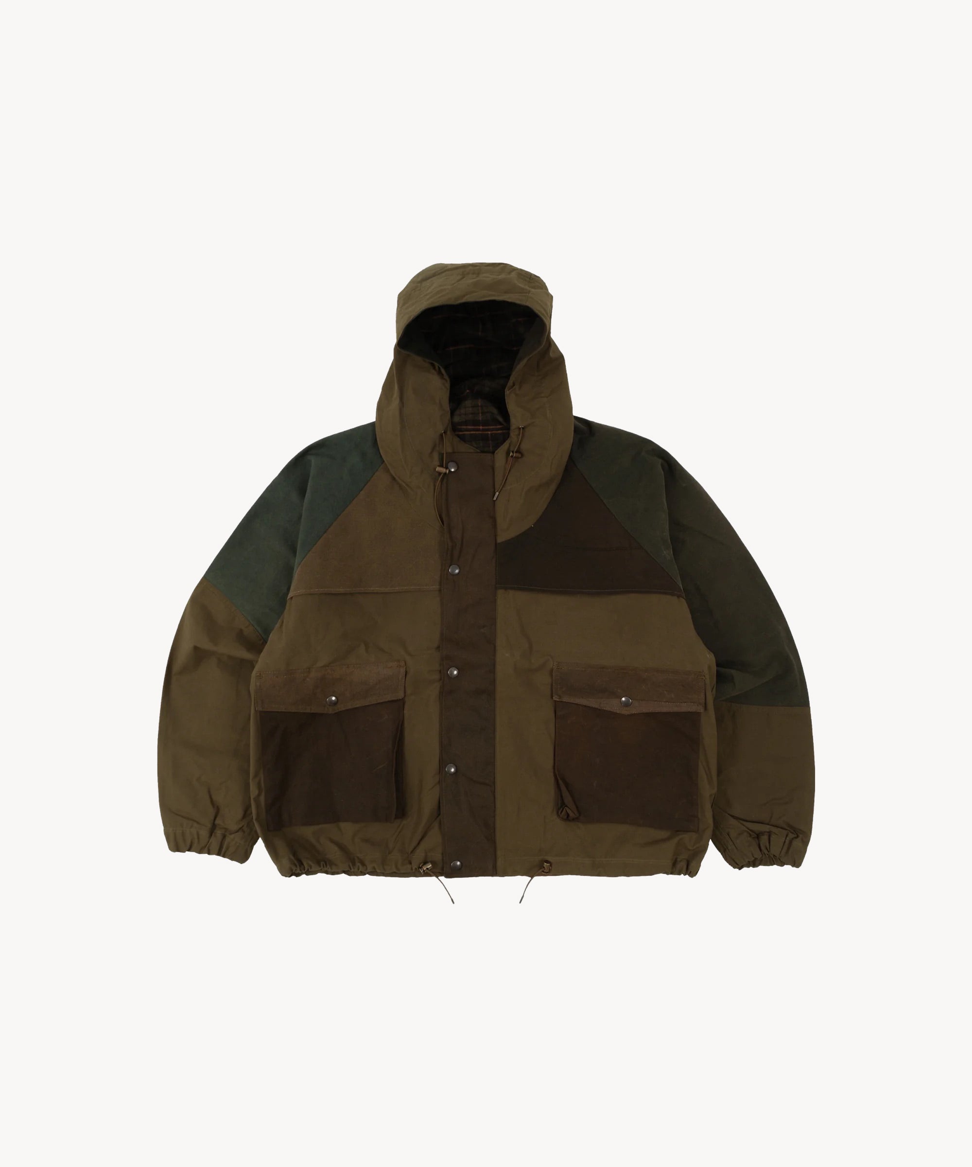 The REWORK® WAX RAIN CROPPED JACKET is crafted from old stock British Millerain dry waxed fabric and curated vintage Barbour in a patchwork style. Each jacket is one of a kind, made from vintage materials and quality hardware. To honor this legacy, all of our REWORK® WAX RAIN CROPPED JACKET are cut and sewn with vintage equipment in our atelier in Paris.