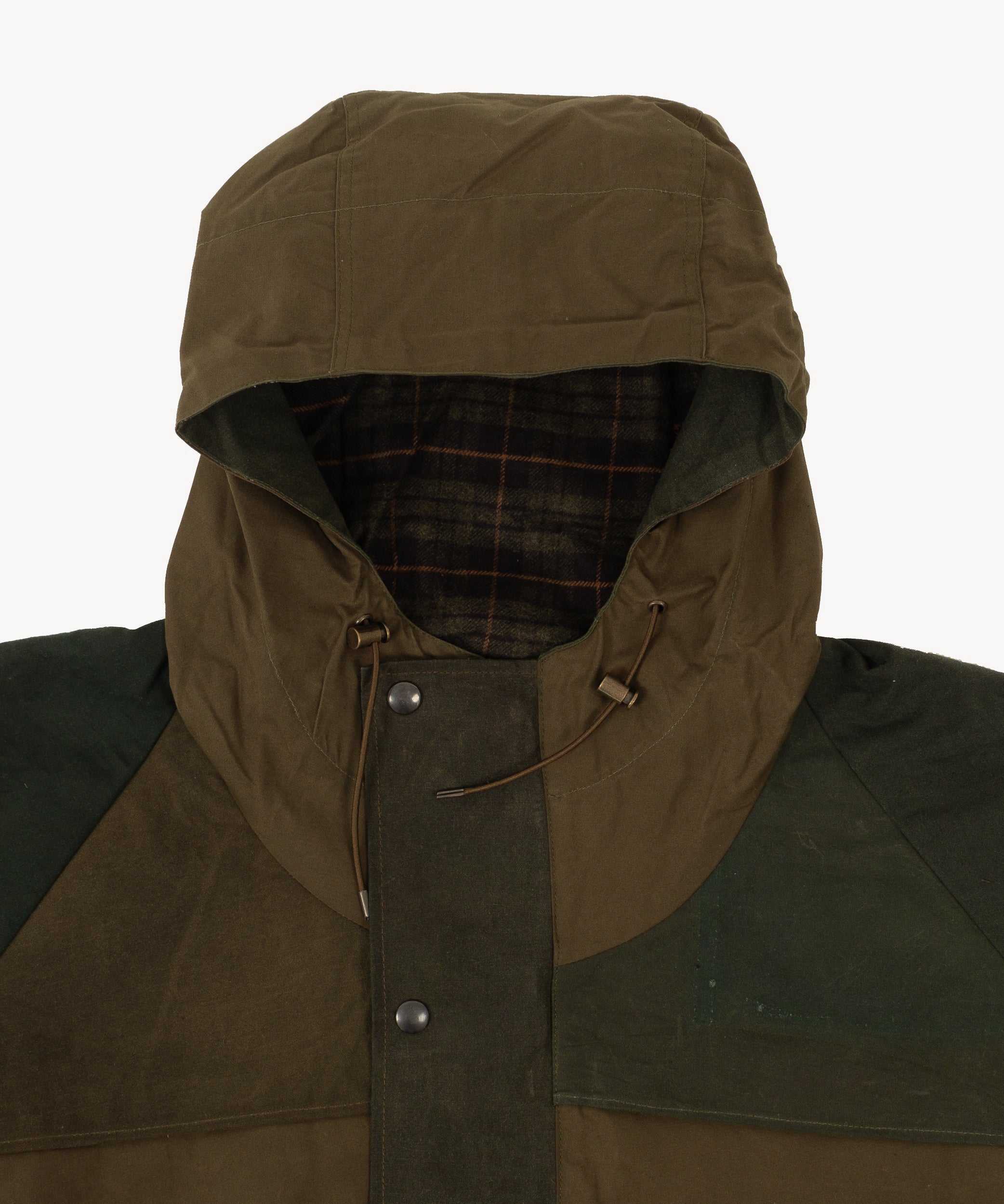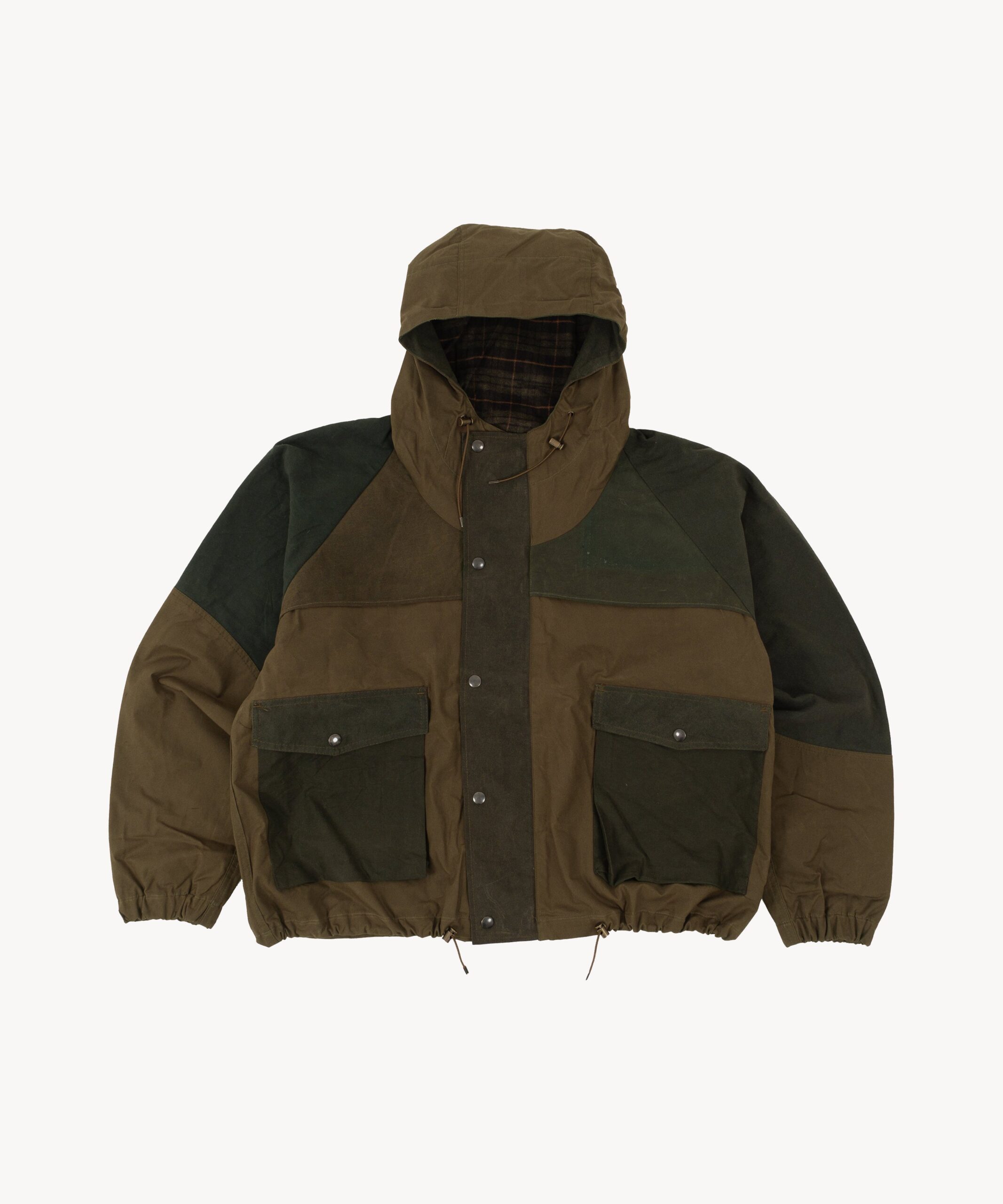 The REWORK® WAX RAIN CROPPED JACKET is crafted from old stock British Millerain dry waxed fabric and curated vintage Barbour in a patchwork style. Each jacket is one of a kind, made from vintage materials and quality hardware. To honor this legacy, all of our REWORK® WAX RAIN CROPPED JACKET are cut and sewn with vintage equipment in our atelier in Paris.