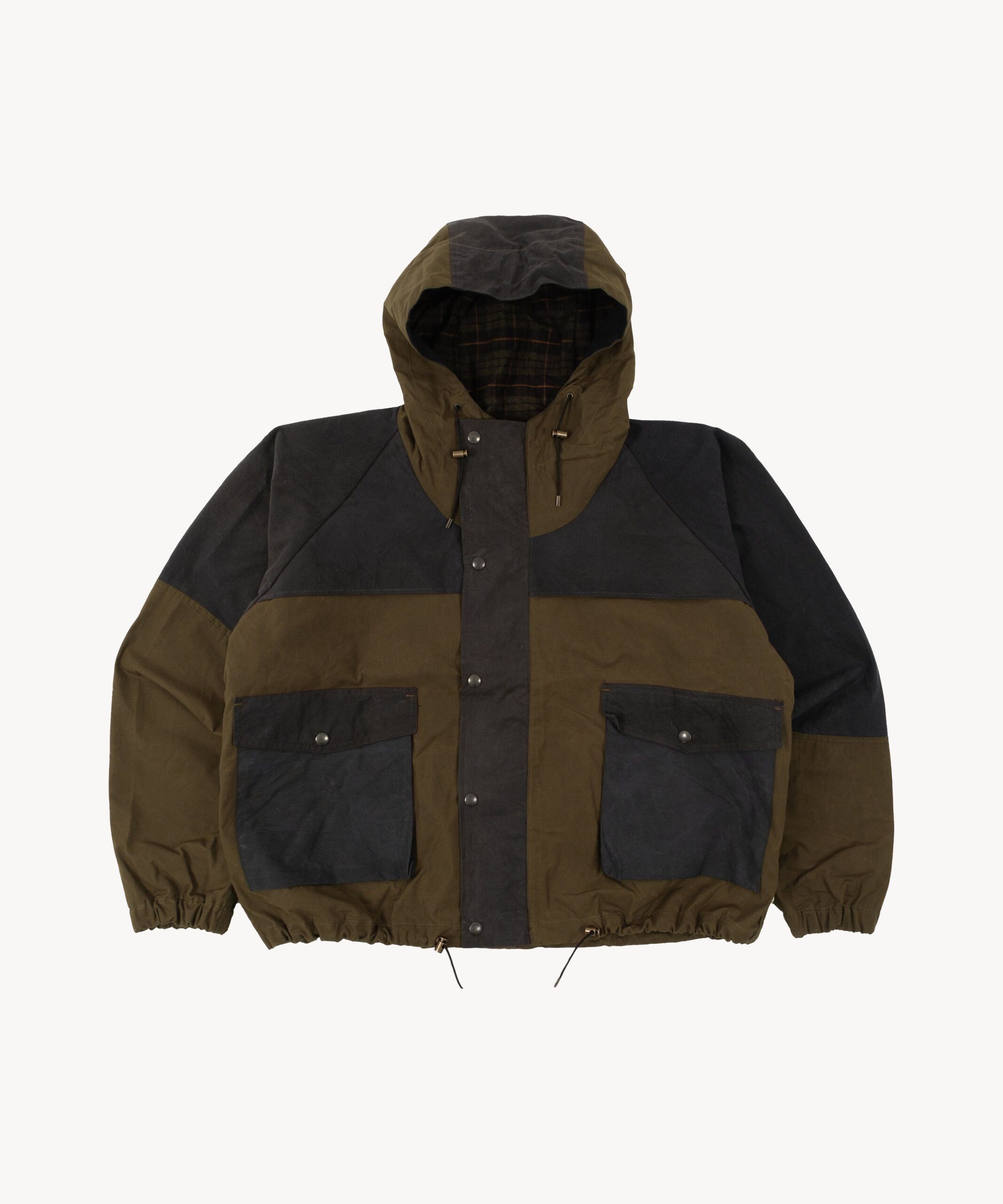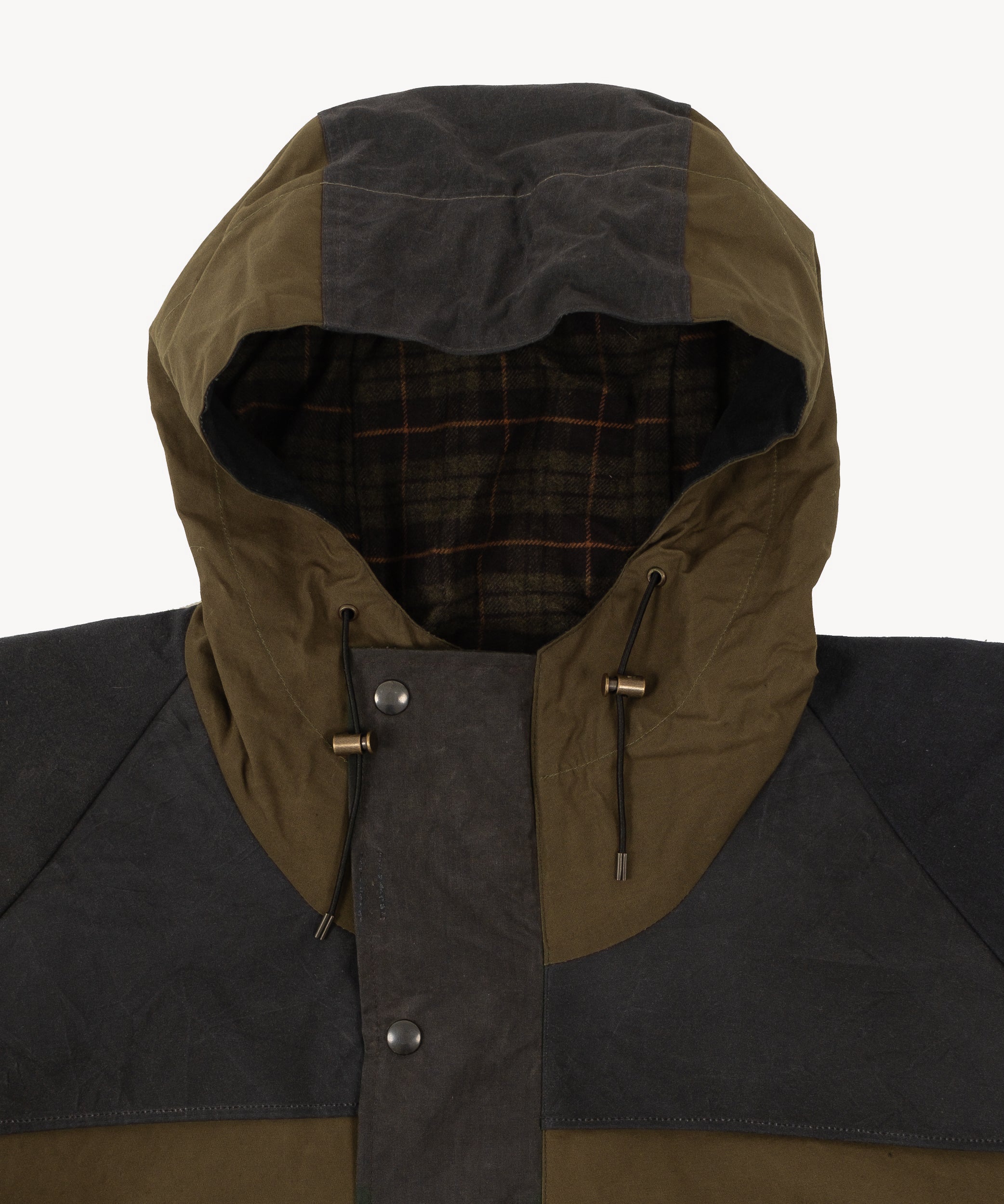 The REWORK® WAX RAIN CROPPED JACKET is crafted from old stock British Millerain dry waxed fabric and curated vintage Barbour in a patchwork style. Each jacket is one of a kind, made from vintage materials and quality hardware. To honor this legacy, all of our REWORK® WAX RAIN CROPPED JACKET are cut and sewn with vintage equipment in our atelier in Paris.