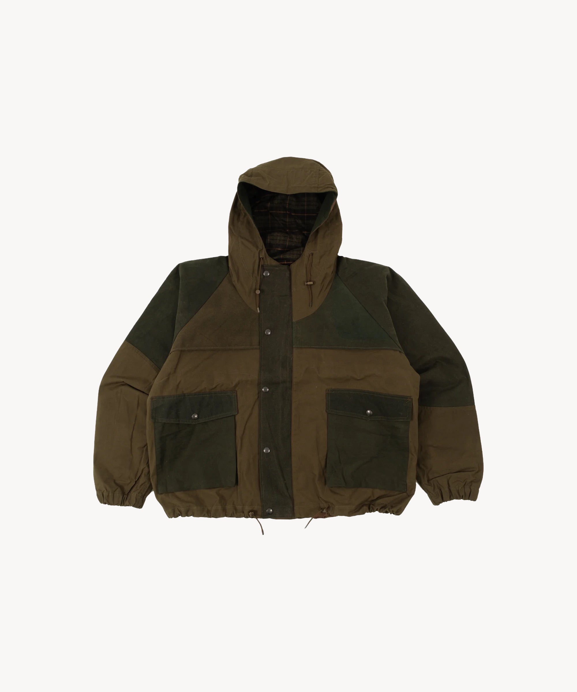 The REWORK® WAX RAIN CROPPED JACKET is crafted from old stock British Millerain dry waxed fabric and curated vintage Barbour in a patchwork style. Each jacket is one of a kind, made from vintage materials and quality hardware. To honor this legacy, all of our REWORK® WAX RAIN CROPPED JACKET are cut and sewn with vintage equipment in our atelier in Paris.