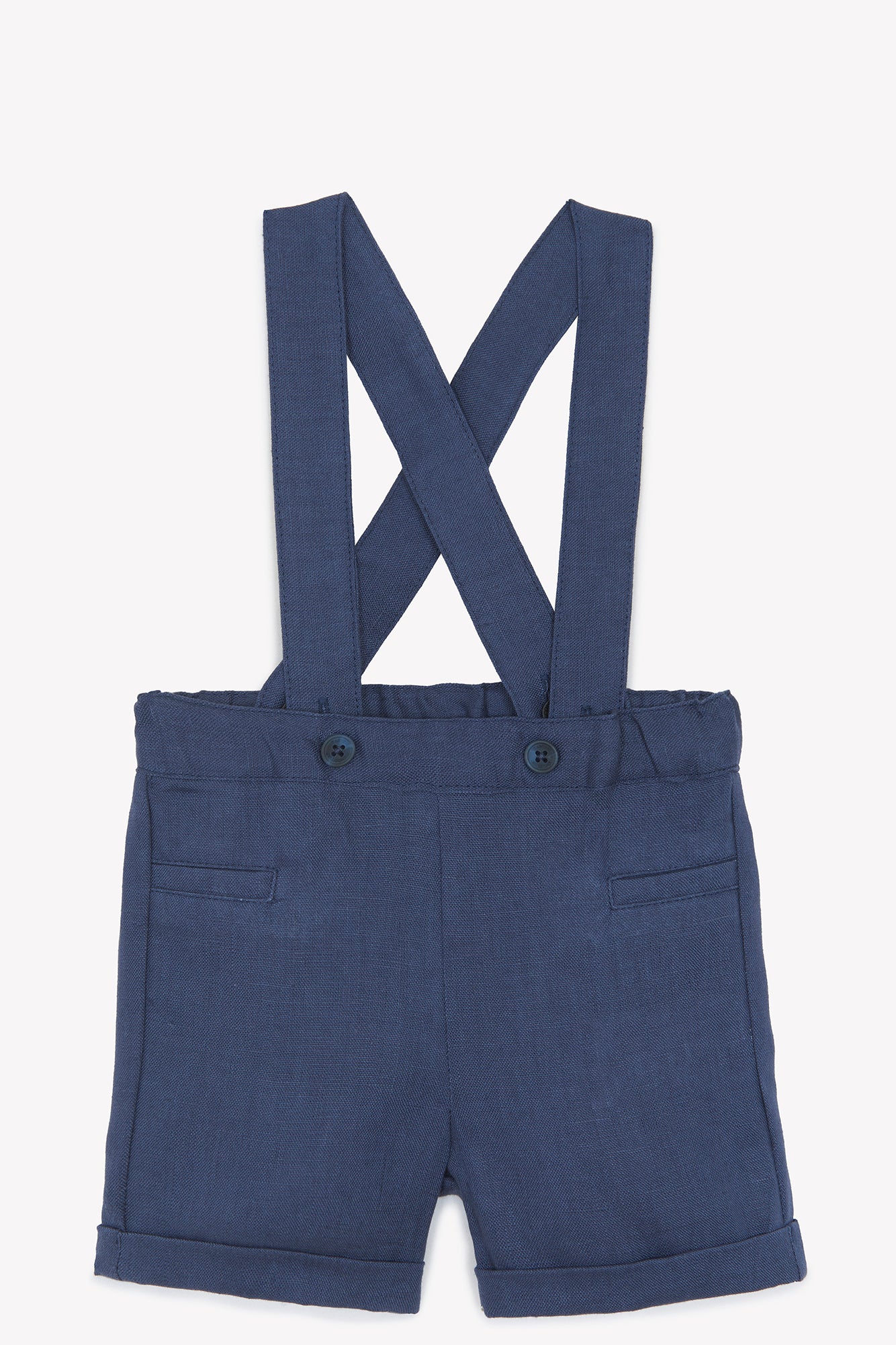 Ce pantalon en lin marine avec bretelles est le choix parfait pour les cérémonies et les occasions spéciales. Élégant et confortable, il habille bébé garçon avec une touche de sophistication. Sa couleur intemporelle et sa coupe soignée en font une pièce incontournable, à associer avec un body ou une chemise pour un look chic et harmonieux. CA22051-04