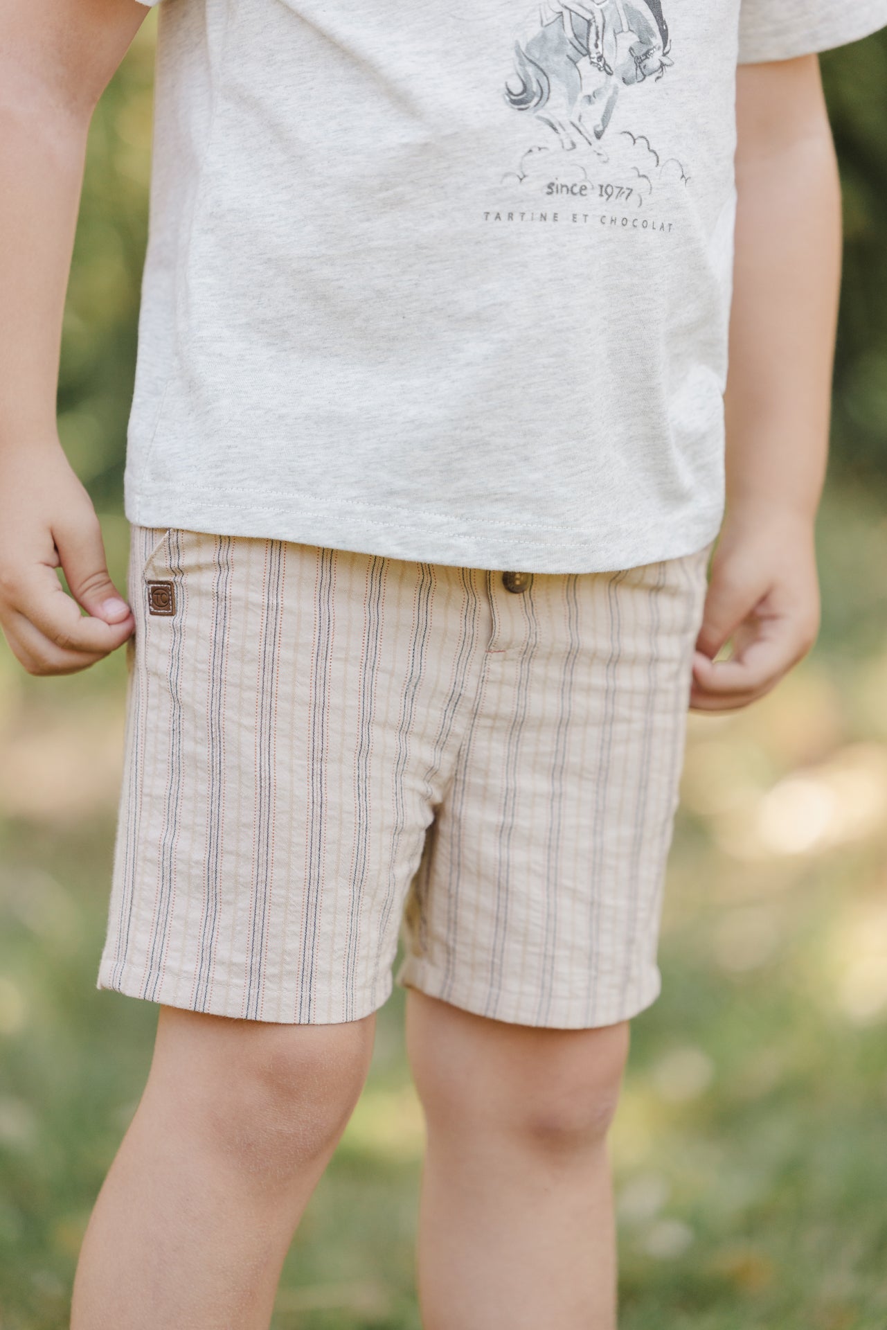 Ce short ocre à rayures pour bébé garçon apporte une note chaleureuse et originale à sa tenue. En tissu doux et confortable, il est idéal pour les journées d’été. On aime l’associer à un t-shirt ou une chemise pour un look lumineux et élégant. CA26161-75