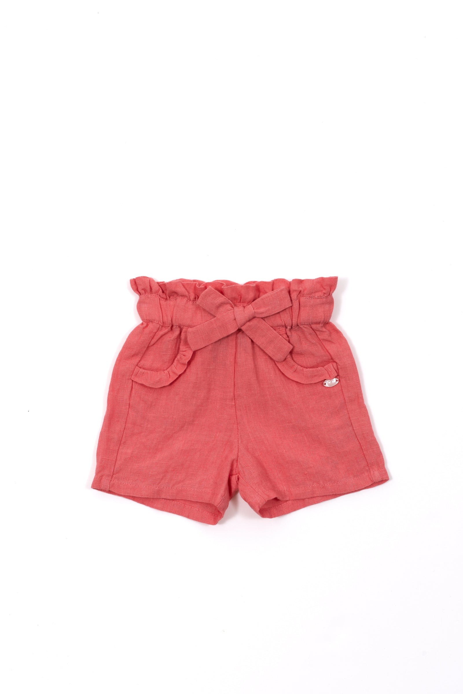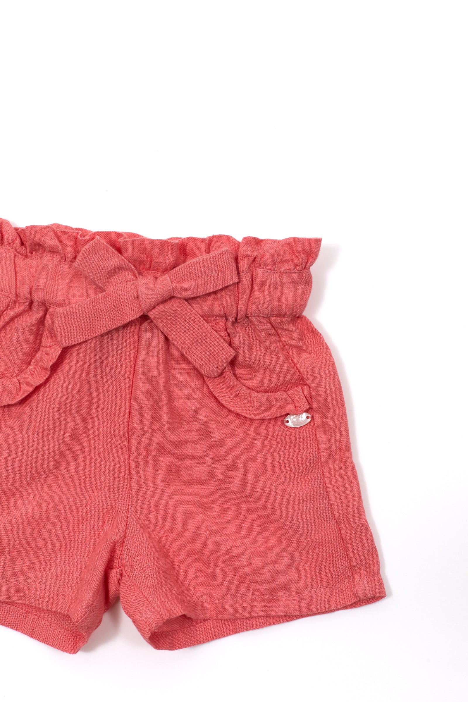 Poétique et élégant, ce joli short rose taille haute est un incontournable de l’été. Sa matière en 100% Lin lui apporte un véritable vent de fraicheur et de légèreté qui ravira les petites filles. On adore la ceinture moderne élastiquée avec un nœud à la taille et les détails volantés que l’on associe avec une blouse pour un look élégant pour le quotidien.