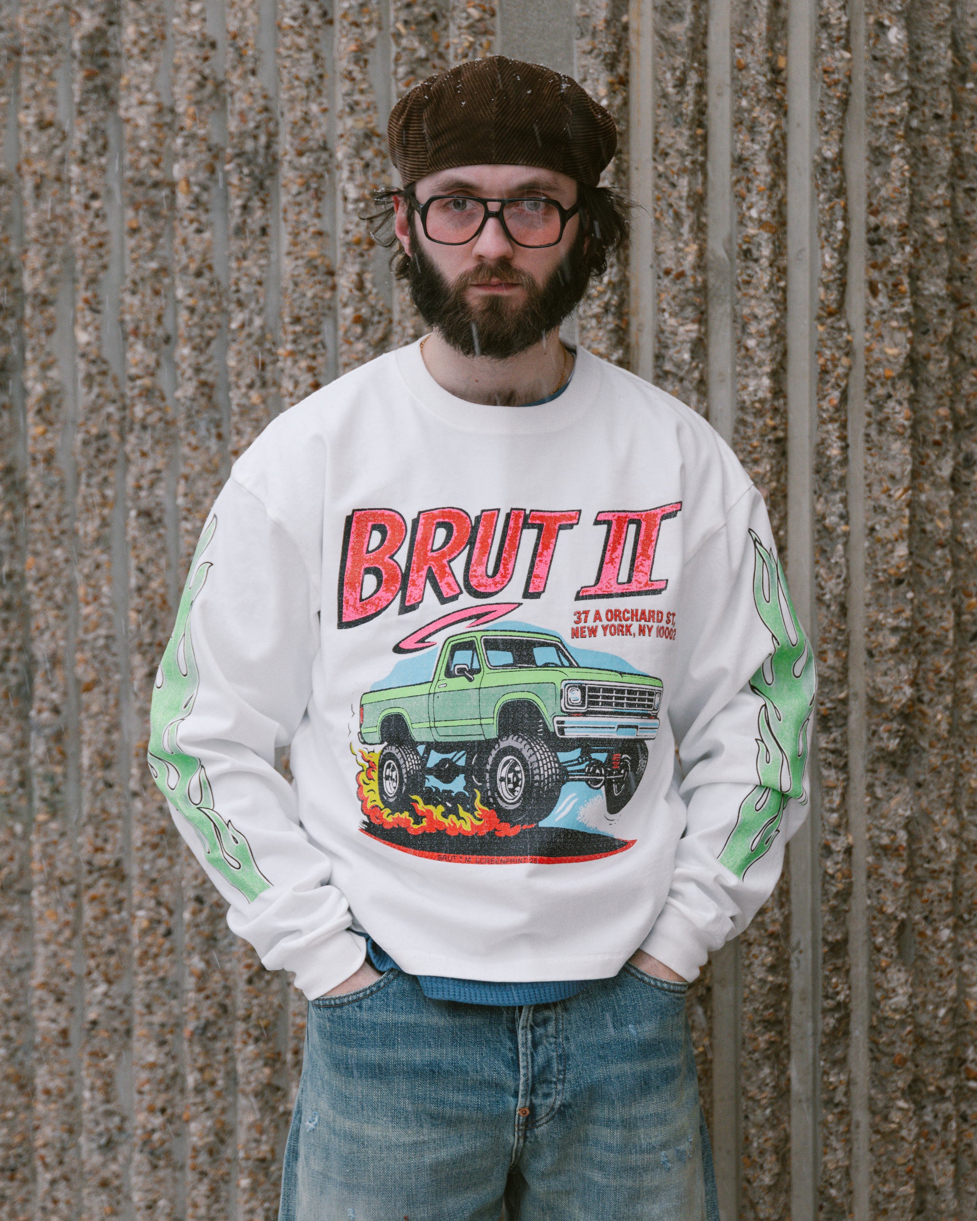 Brut Archives Monster Truck graphics screen printed on front and sleeves.