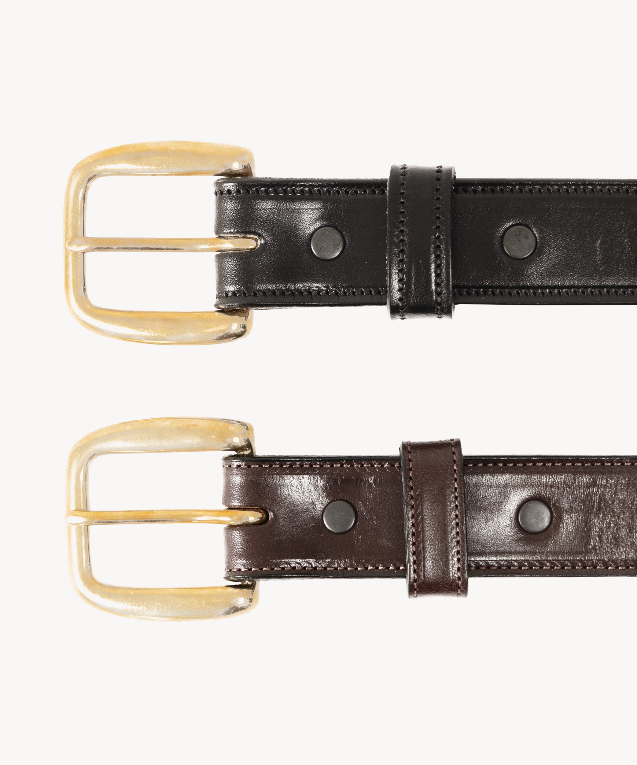 The belt is manufactured for BRUT by Tory Leather, an American company based in Curwensville, PA. Each belt is made from English bridle leather sourced from Wickett & Craig, awarded the 2015 Tannery of the Year.
