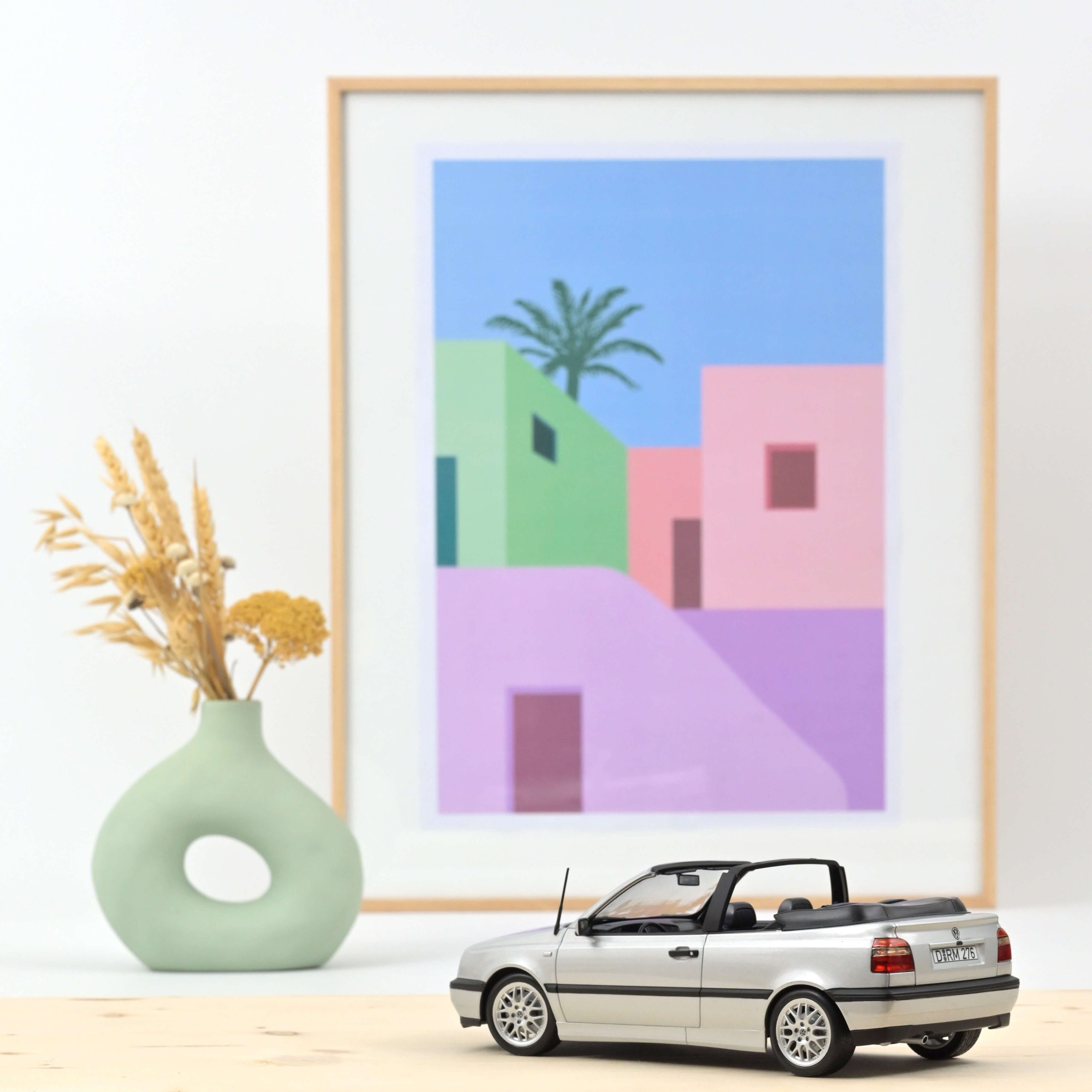 Le modèle peint en argent satiné reproduit au mieux les lignes élégantes de son modèle. En combinaison avec l’intérieur noir et les jantes BBS aussi attrayantes que sportives, la miniature Norev cite une Golf typique des années 1990.